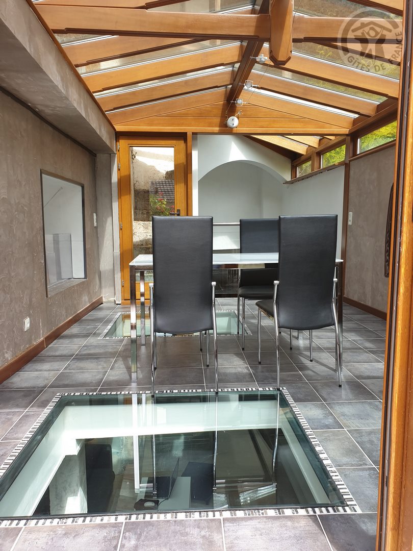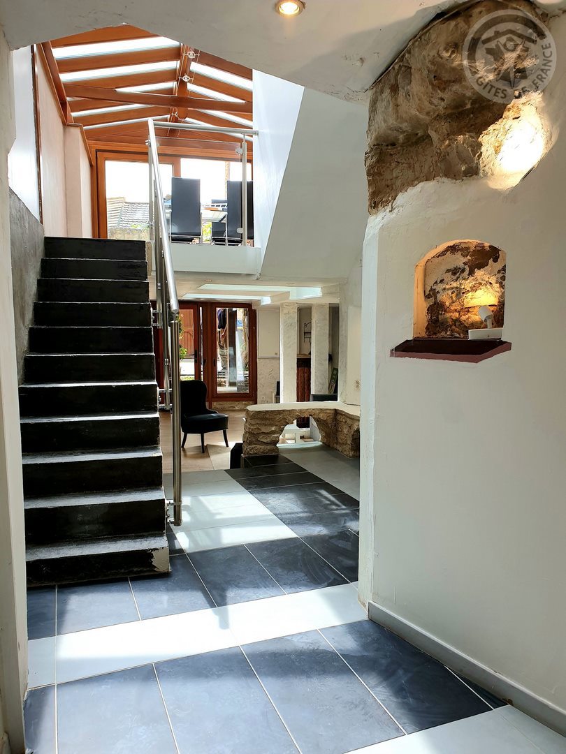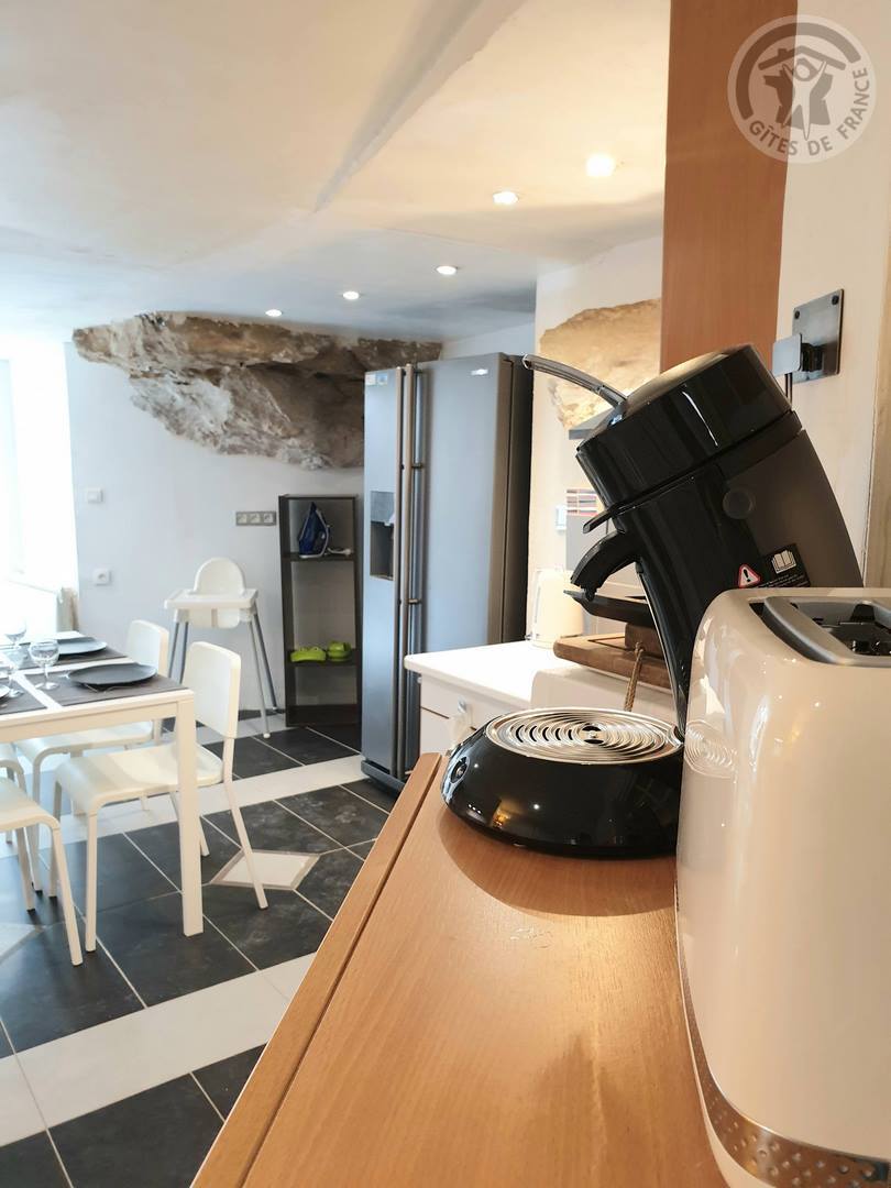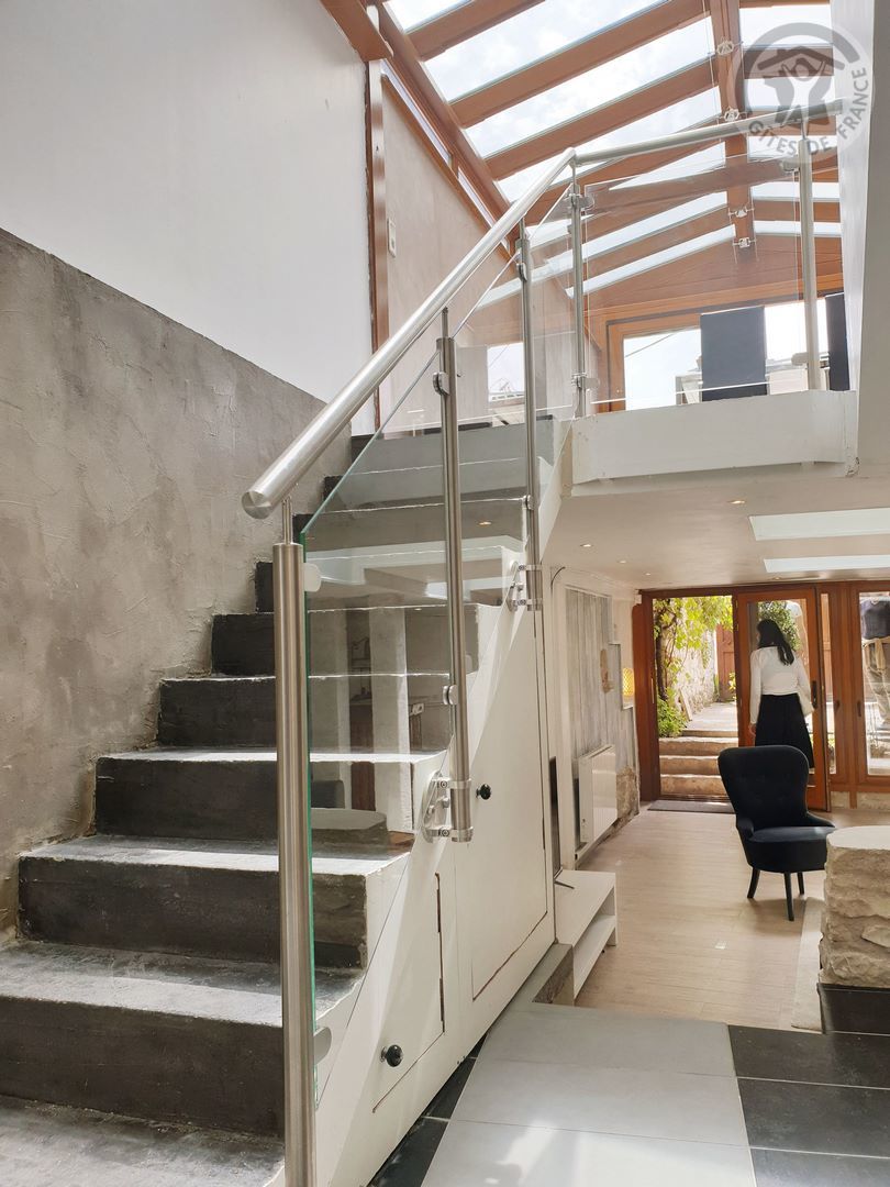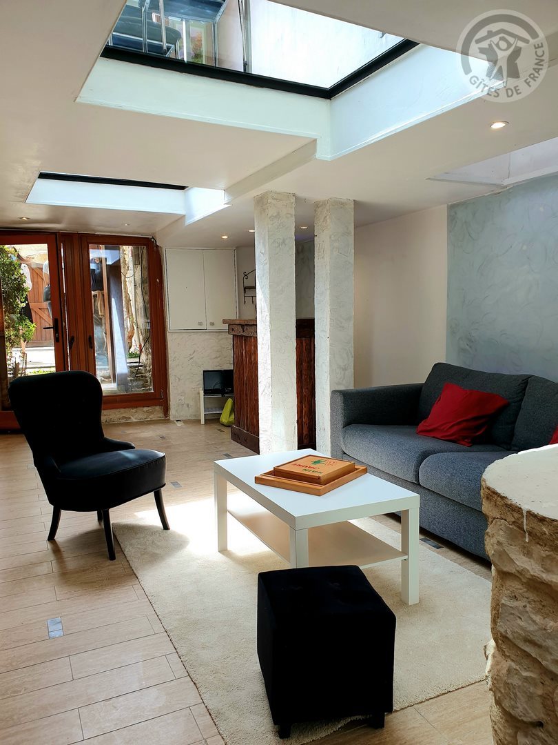Cette maison design et contemporaine intégrée dans une grotte disposant d'une grande véranda à l'étage (salle à manger) surplombant la ville, avec vue sur une boucle de la Seine, vous séduira. sans nul doute Vous serez surpris par la jolie luminosité jaillissante. Et vous pourrez profiter de sa douce température été comme hiver. Un véritable havre de paix, dans une impasse très calme !