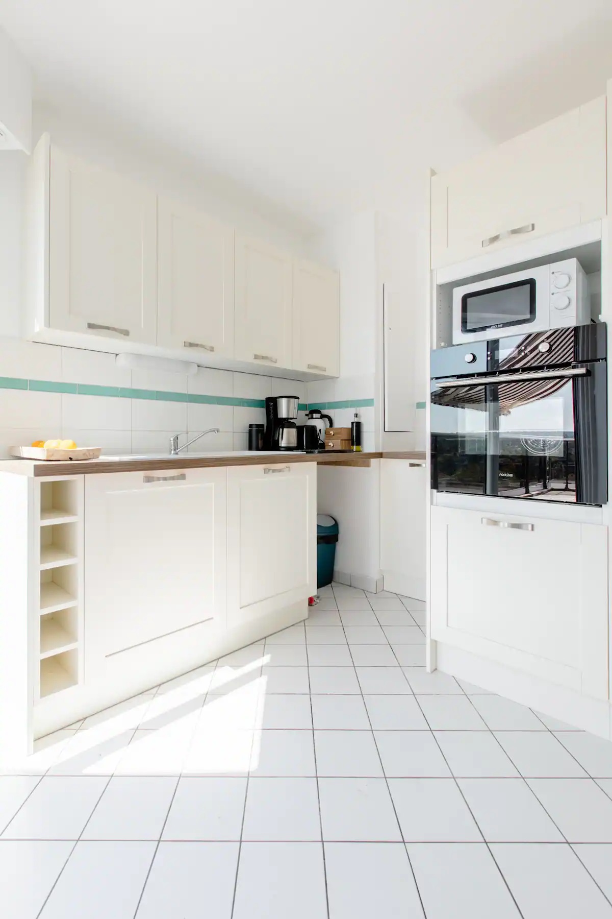 L’appartement est composé de deux chambres, une sdb et une grande cuisine. Idéal pour 4 adultes Le salon disponible d un canapé lit avec couchage quotidien pour 2 personnes supplémentaires matelas 22cm. L’appartement n’est pas adapté aux enfants de moins de 12 ans compte tenu de son étage élevée. Les enfants sont sous la responsabilité des parents.