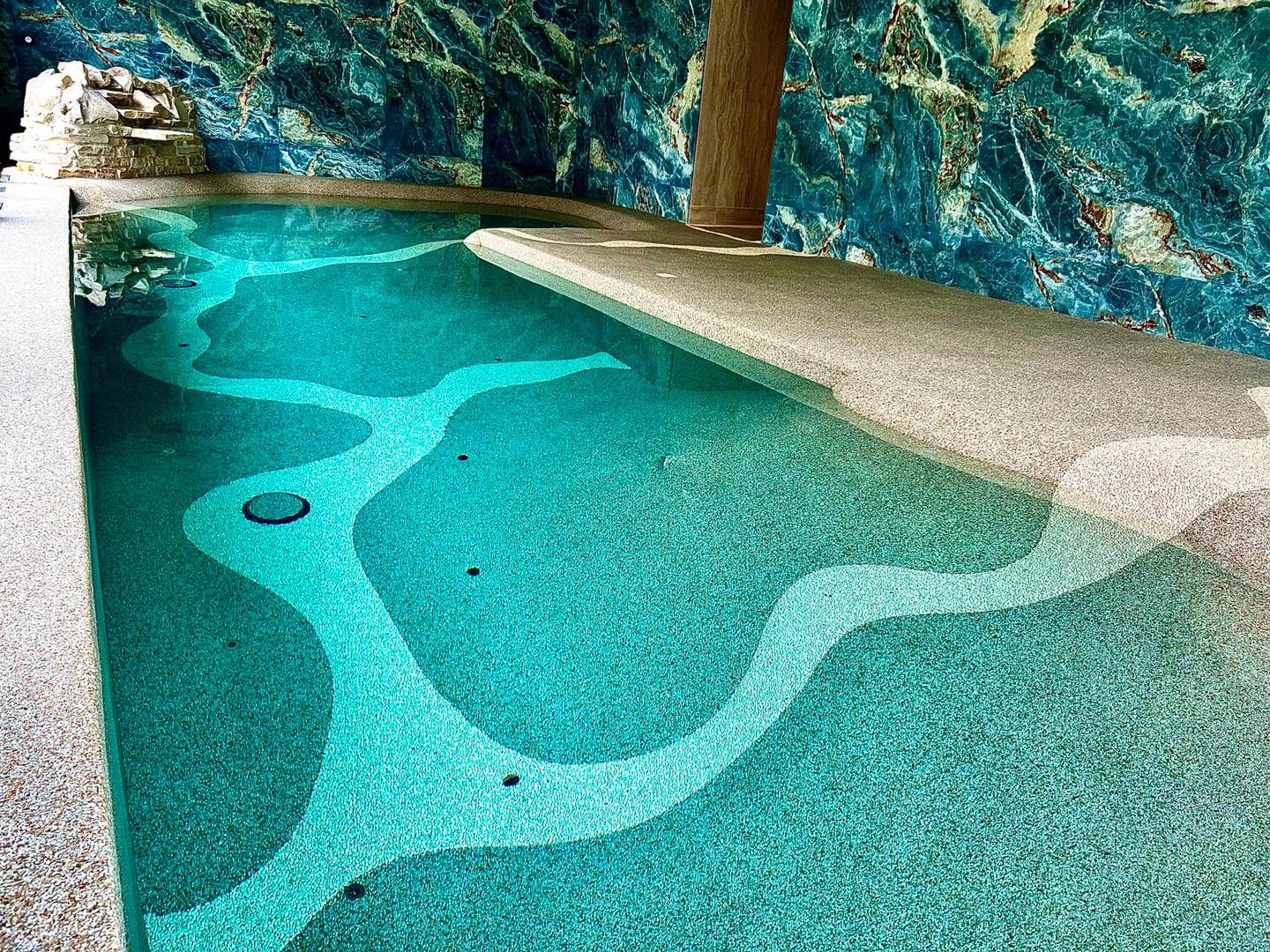 - Piscine intérieure chauffée en forme de lagon avec cascade et bain à remous, pour profiter des bienfaits de l’eau.