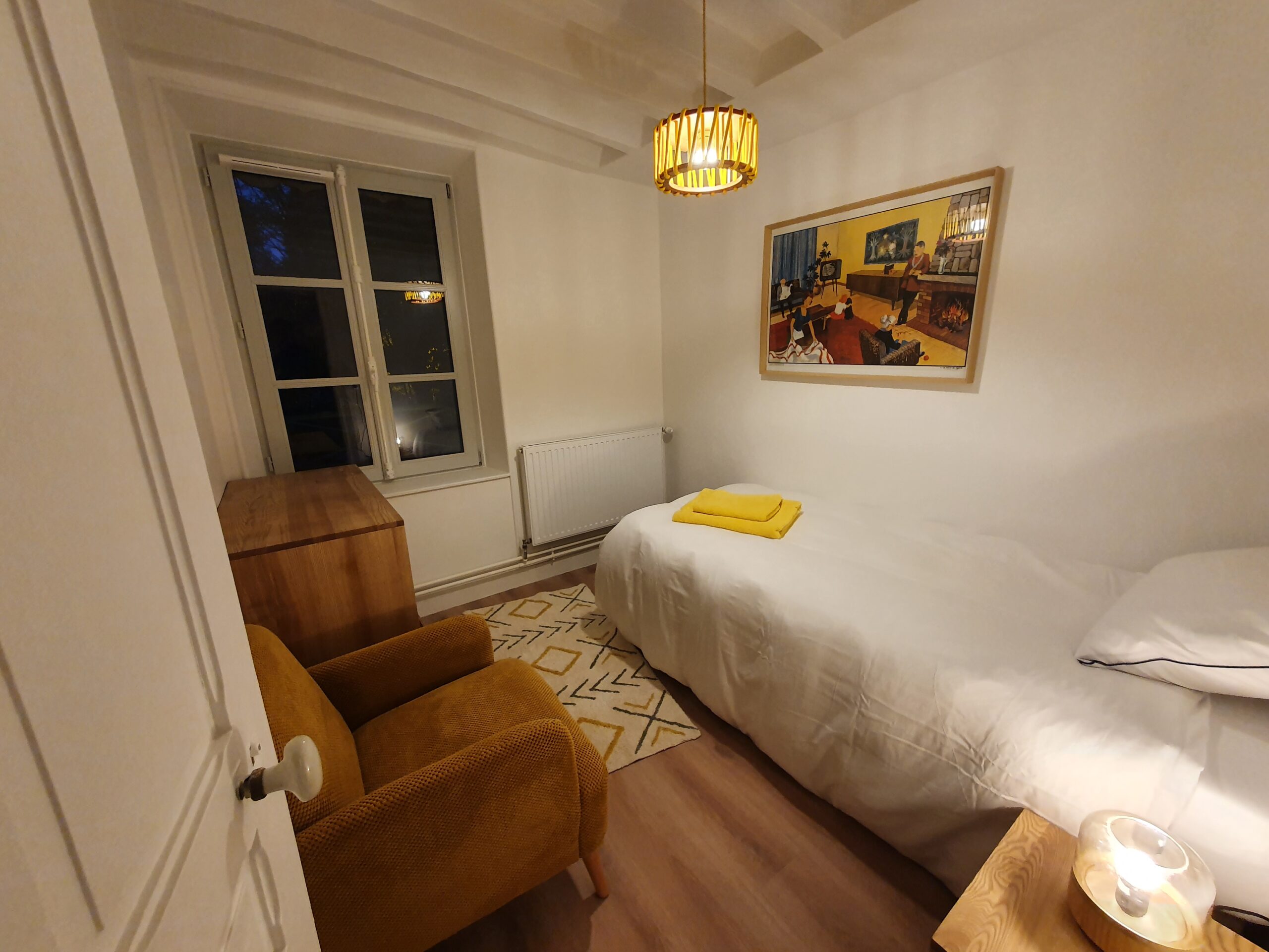 Chambre d'hôte familiale située dans les combles de la maison forte à Choisel, vieille de plus de 250 ans, maison qui historiquement abritait la garde du château de Dampierre. La chambre est confortable, environ 50m2, un lit 160x200 pour un couple et 2 lits d'une personne pour 2 enfants, une salle de bain avec douche et baignoire, un WC séparé. Le petit déjeuner, inclus, vous sera servi à l'auberge du village, tenue par votre hôtesse. Il suffira d'une petite marche de 5mn pour vous ouvrir l'appétit. L'entrée de la chambre est indépendante, un escalier majestueux vous y conduira. La mairie met à disposition une borne de recharge pour véhicules électriques et également un abri vélo sécurisé pouvant contenir 6 vélos. Ces prestations sont situées à la mairie, à 100 m de la maison. Les vélos peuvent également être garés dans le hall de la maison forte en toute sécurité. Suite à des incivilités, les animaux ne sont plus acceptés. Merci de votre compréhension.