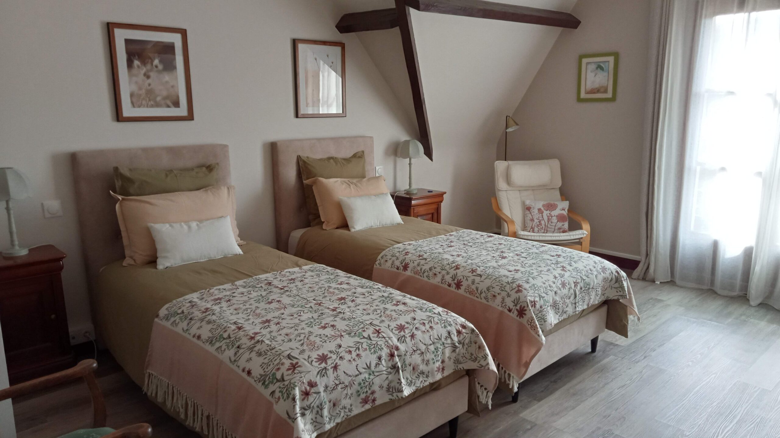 Le premier étage vous est réservé avec une chambre double et une suite de deux chambres double avec vue dégagée sur le jardin, une mezzanine dédiée aux petits déjeuners avec son balcon, une salle de jeux équipée avec TV, billard, jeu d’échec, jeu de fléchettes, livres et BD. Des vélos sont proposés pour sillonner la campagne.