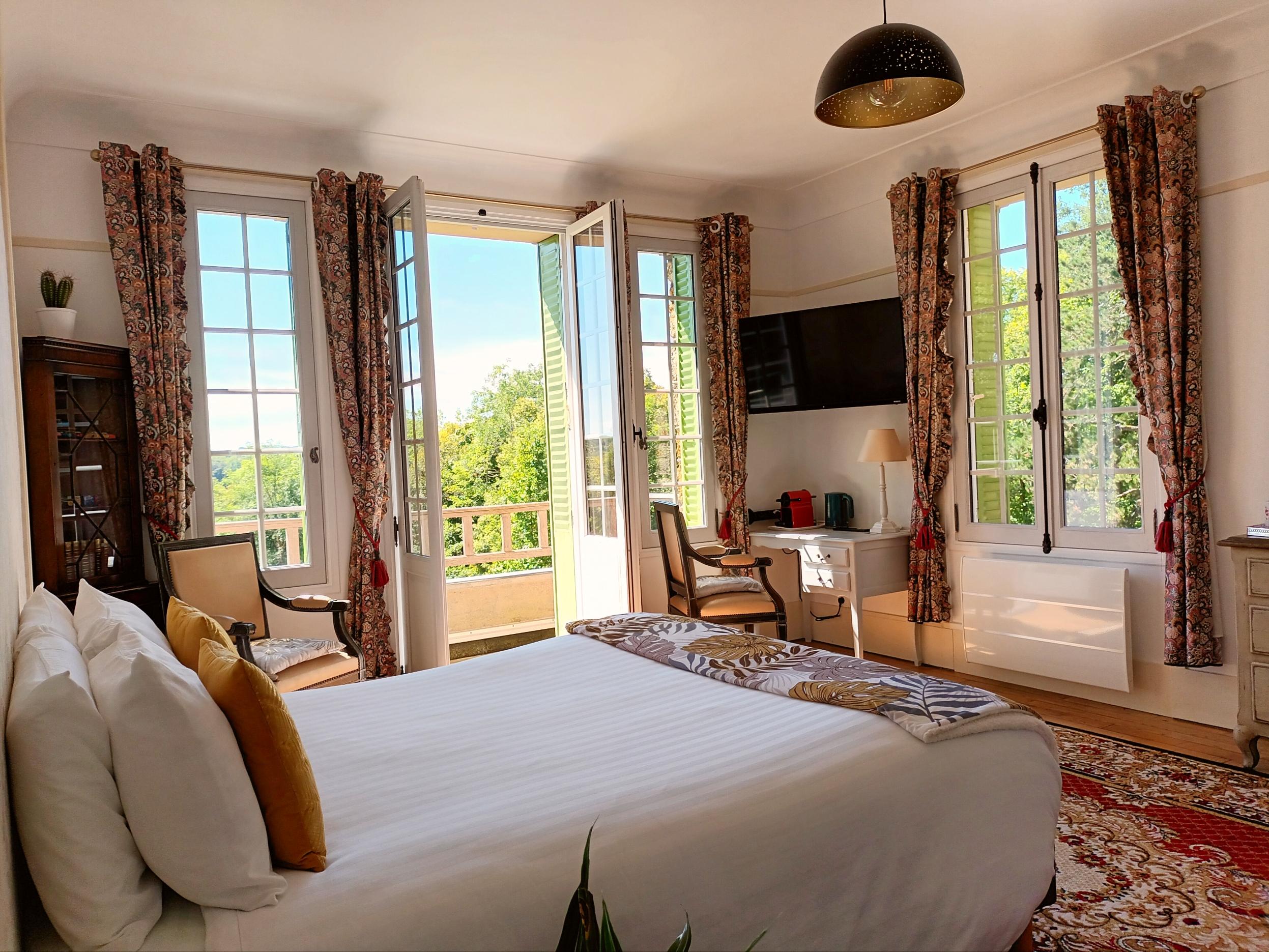 Nos chambres spacieuses, avec lit double ou lits jumeaux, allient charme et confort. Réveillez-vous avec un petit-déjeuner continental servi sur la terrasse ensoleillée, face à la nature.