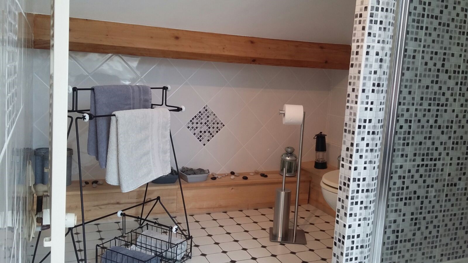 Chambre Prune : À l'étage, cette chambre élégante est équipée d'un lit de 160 cm. Sa salle de bains privative comprend une douche, une baignoire et des toilettes, ainsi qu'un bureau et une penderie pour votre confort. Non-fumeur.