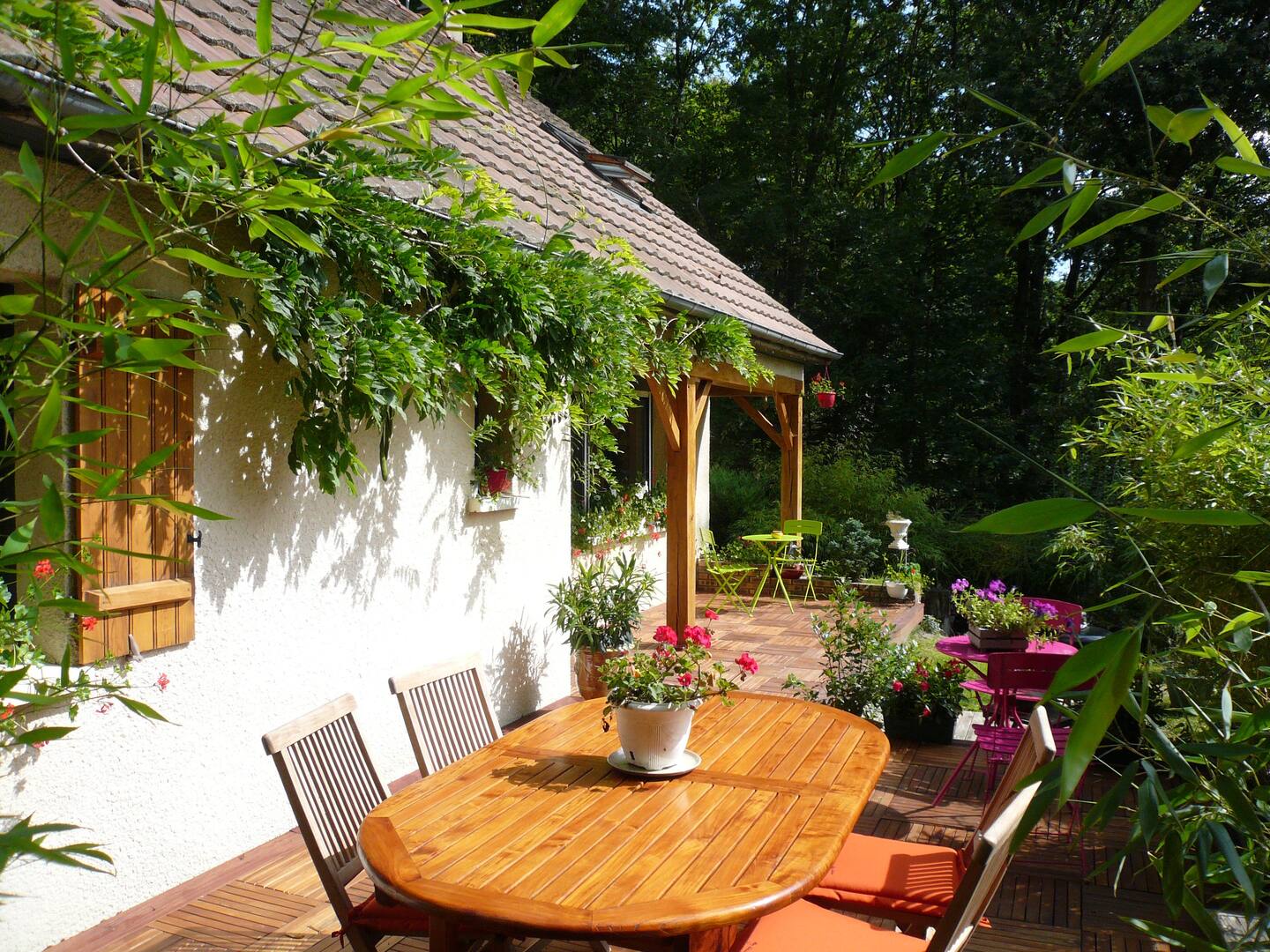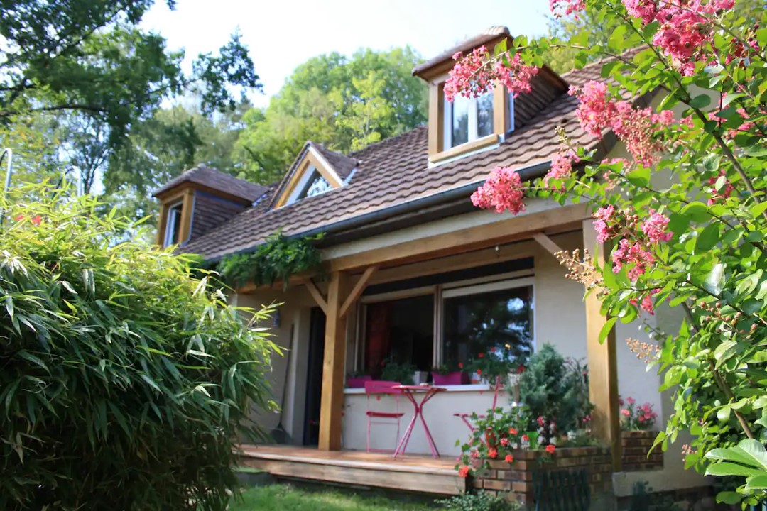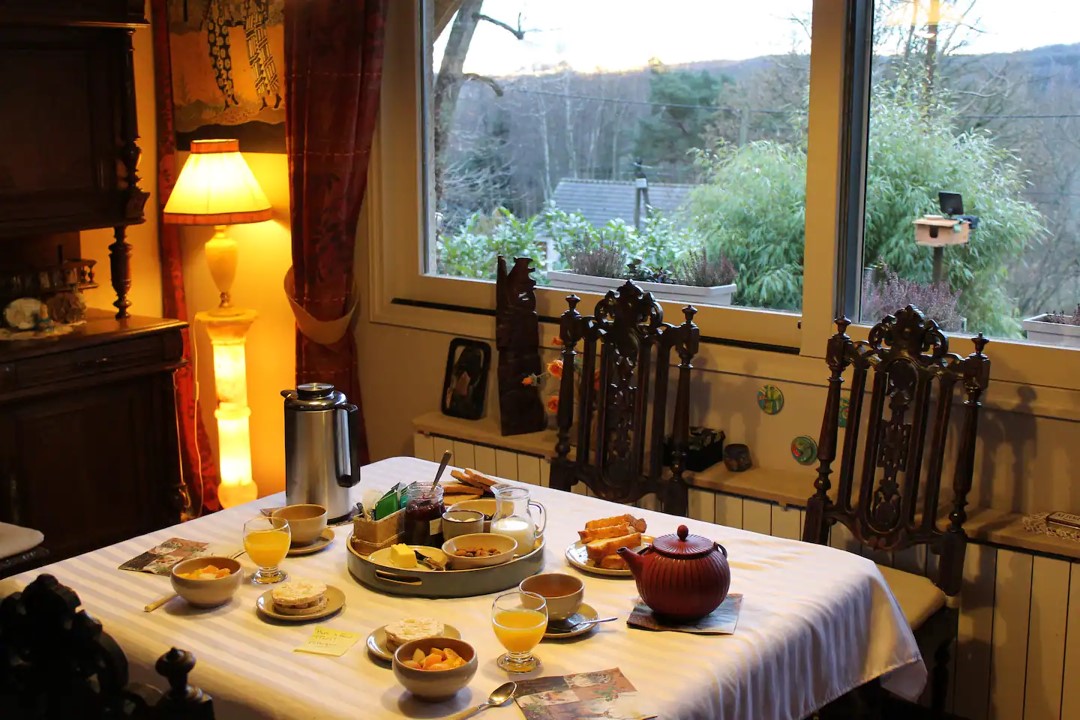 Chambre d'hôtes pour 2 personnes à Sainte-Mesme au sud des Yvelines. L'environnement est très calme avec une belle vue sur la forêt.