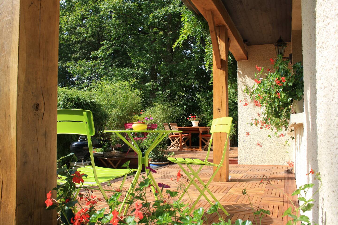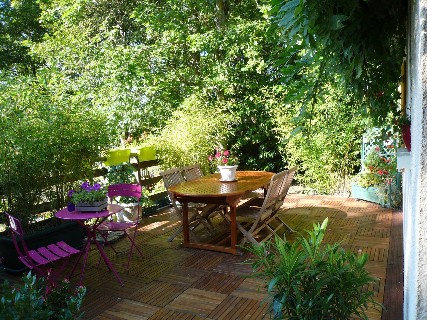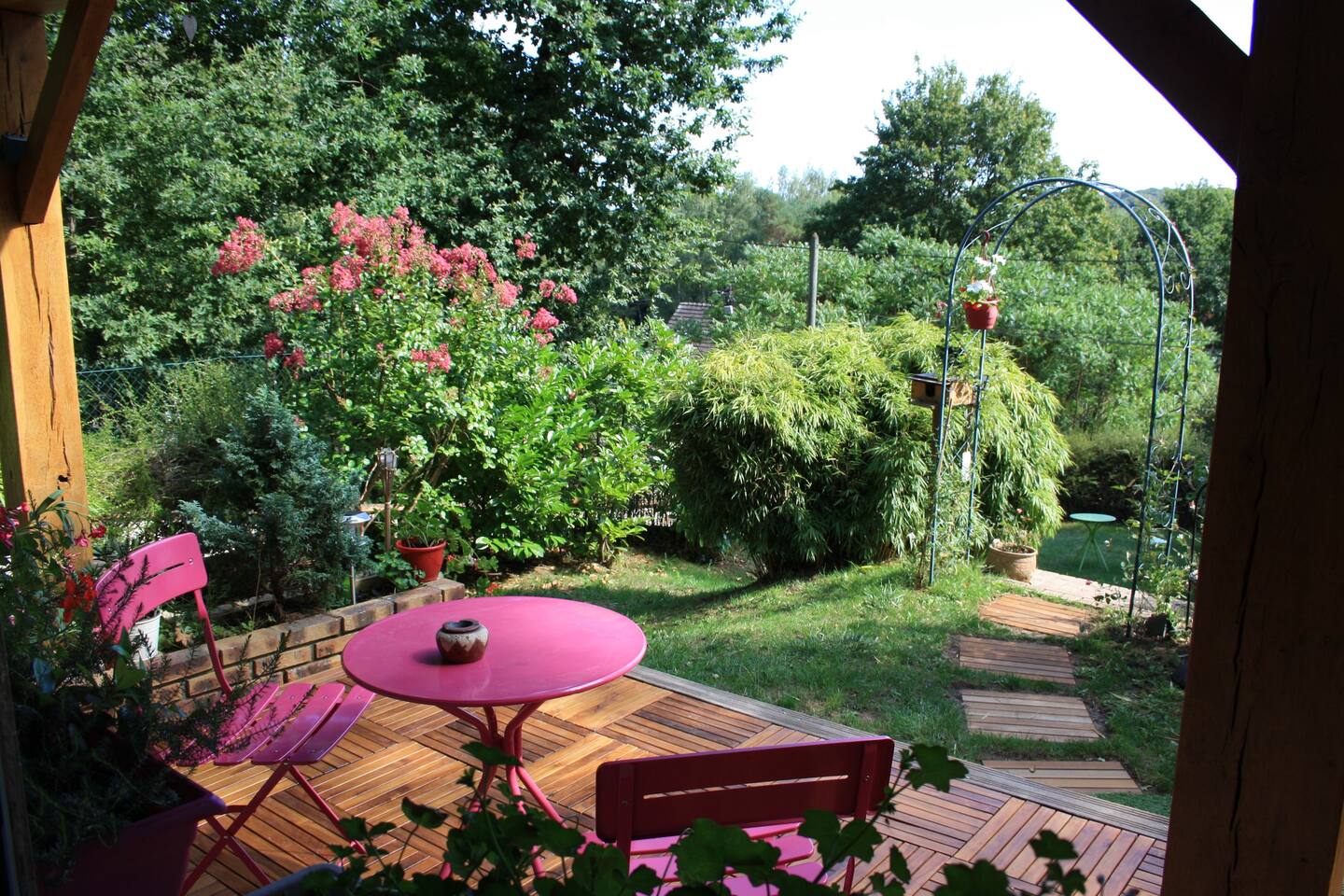 Chambre d'hôtes pour 2 personnes à Sainte-Mesme au sud des Yvelines. L'environnement est très calme avec une belle vue sur la forêt.