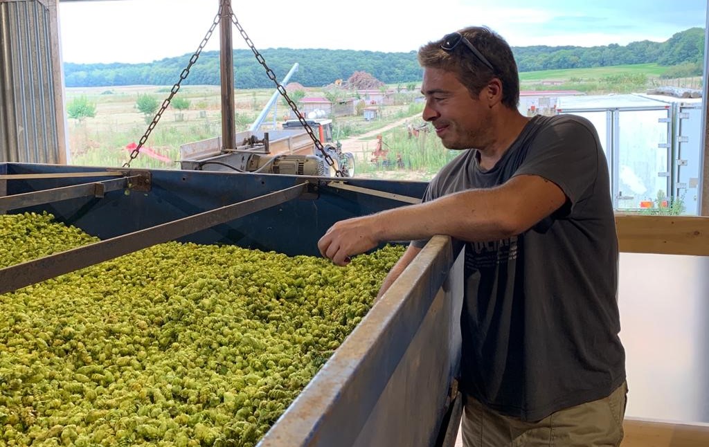 Johann, houblonnier, produit huit variétés de houblon sur deux hectares.