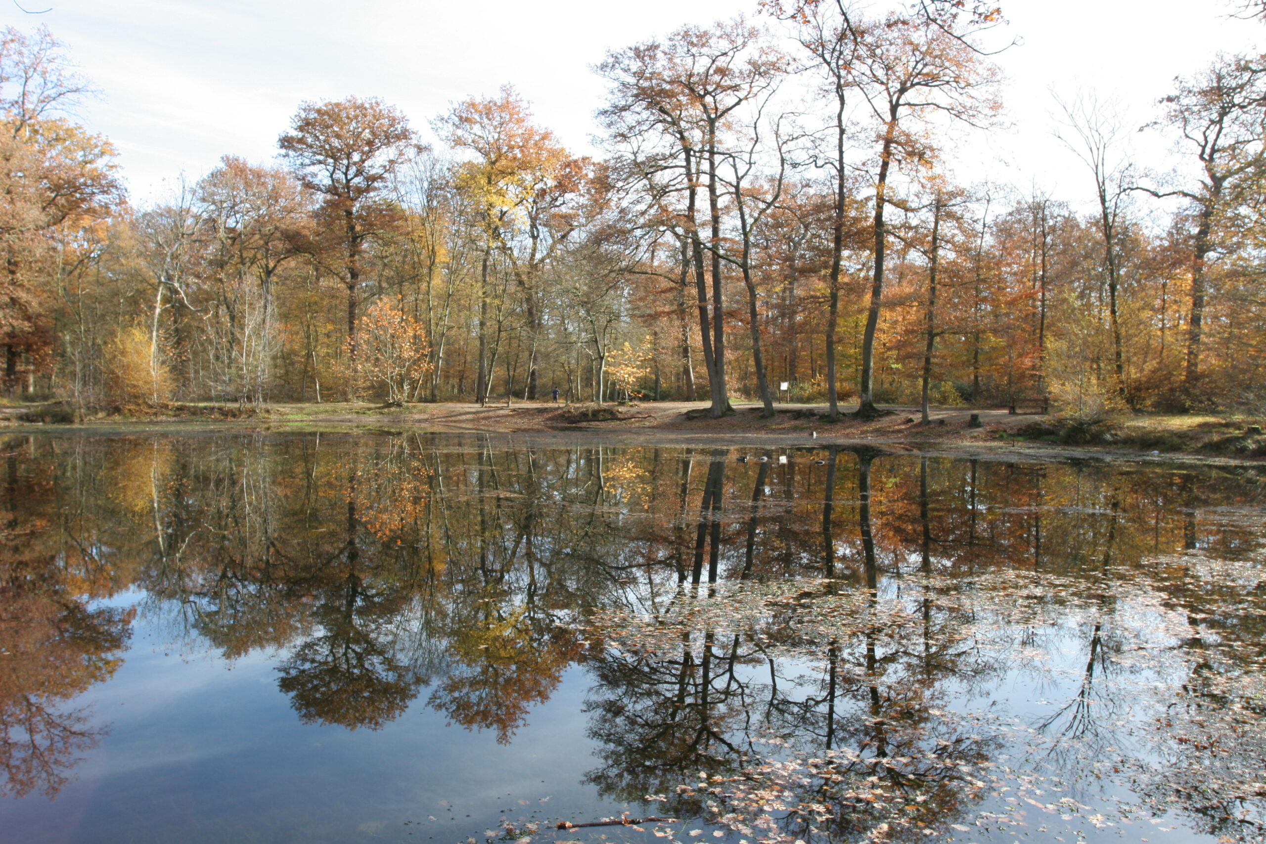 This pond is fed by rainwater collected via ditches. The pond’s presence creates a special environment in this part of the forest, where some unusual wildlife has developed both in the water and on the banks. Next, turn right towards the N184 road.