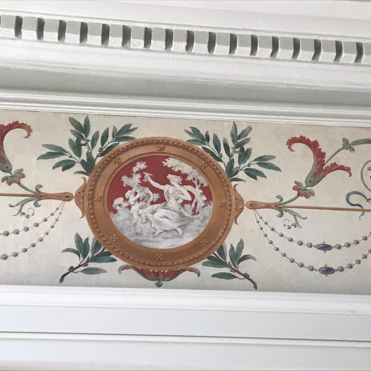 This property, one of the oldest in Bougival, dates back to 1830. The property of Les Fresnes was part of the La Jonchère estate at the beginning of the 19th century when Eugène de Beauharnais lived there. At the time this house must have been built in the neo-classical taste of the period, reminiscent of the Palladian style, with two reception rooms decorated inside with Pompeian style paintings and plasterwork inspired by Antiquity. In the large reception room, the areas above the doors compose a cycle representing the four seasons.