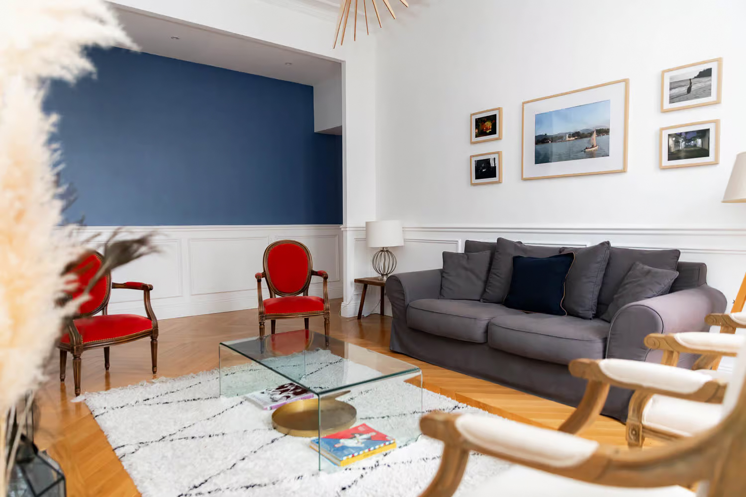 This exceptional 105 m2 flat, completely renovated in 2020, is located on the 1st floor of a building overlooking a wooded courtyard, offering peace and quiet in the heart of history.