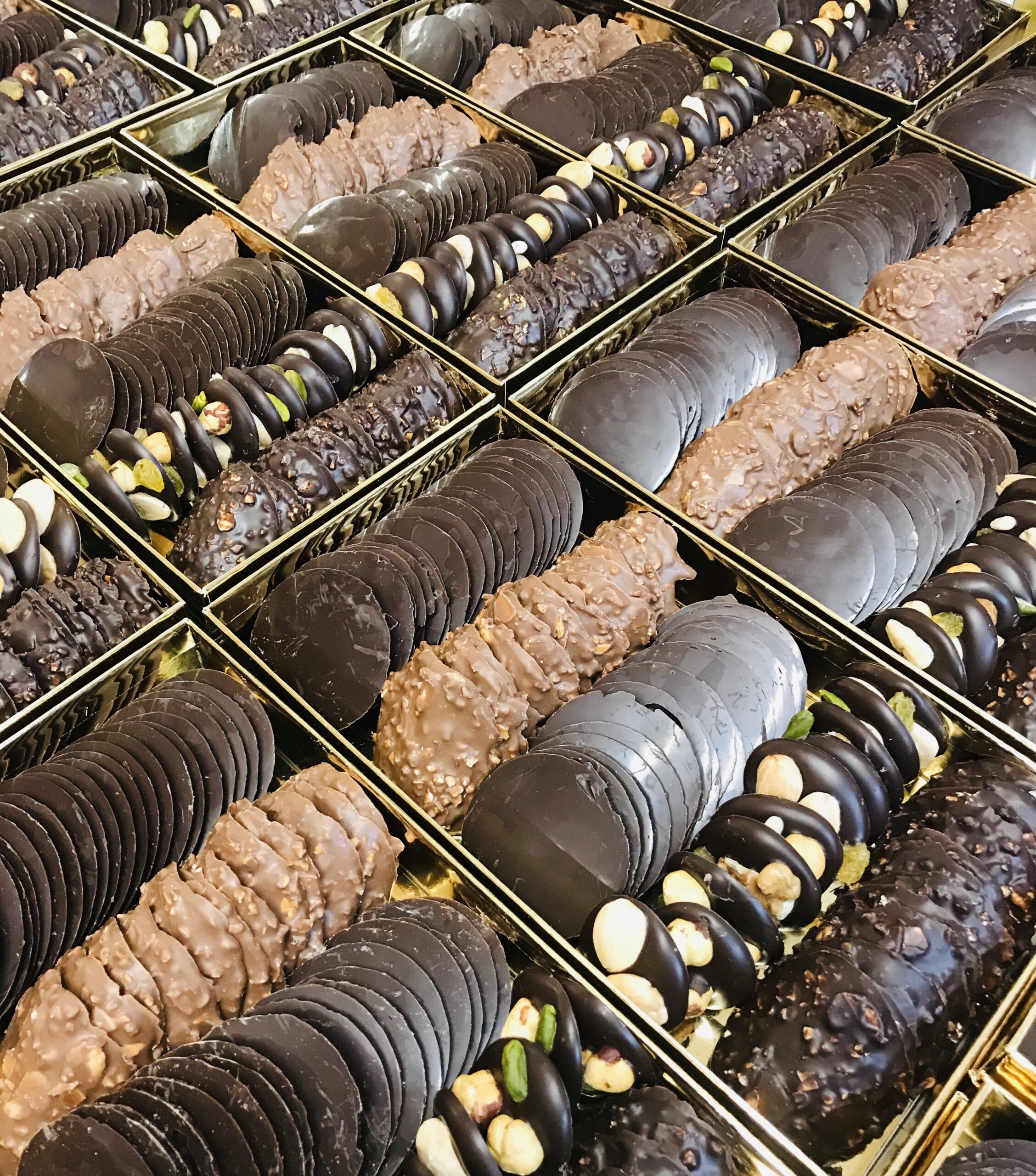 Our chocolatiers make the chocolates in our boutique workshop on rue Hoche in Versailles. Come and discover our range of smooth old-fashioned praline chocolates made with IGP Piedmont hazelnuts. You'll also find our "Favorites du Roy", a speciality that you'll only find in our shop and which is part of the history of our shop; grand cru ganaches also complete the range, along with many other delicacies...