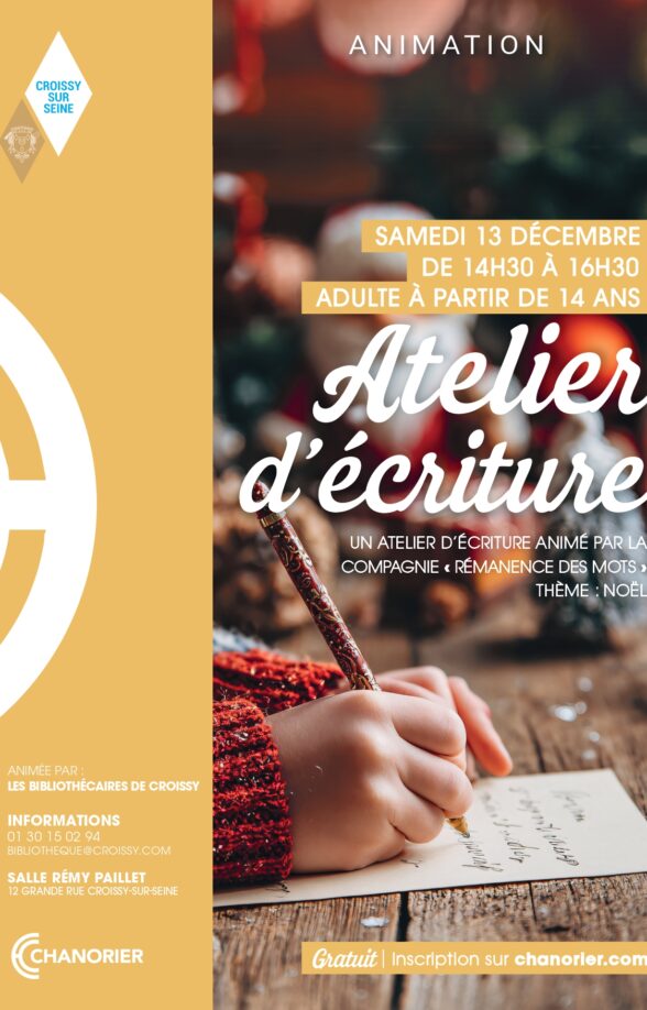 Un atelier d’écriture animé par la compagnie Rémanence des mots. De saison, la thématique sera sur Noël Adulte à partir de 14 ans Rémy Paillet - Gratuit – Sur inscription