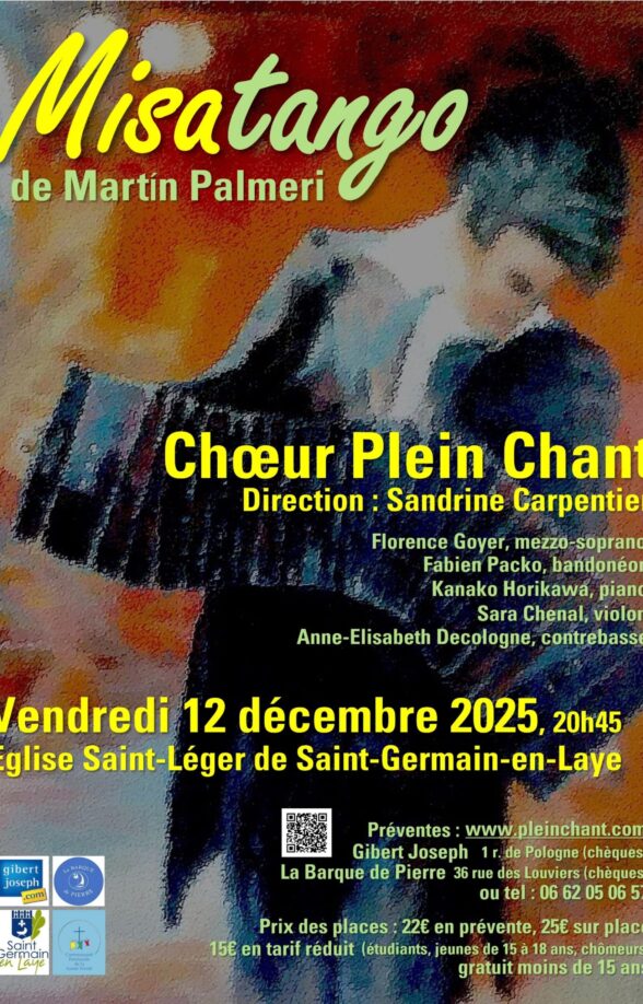 Le programme est composé de la Messe « Misa Tango » de Martin Palmeri. En première partie, des airs et choeurs de musique sud-américaine et notamment Adios Nonino de Astor Piazzola. Ce concert réunira 80 choristes du cœur Plein Chant, ainsi que d'un trio