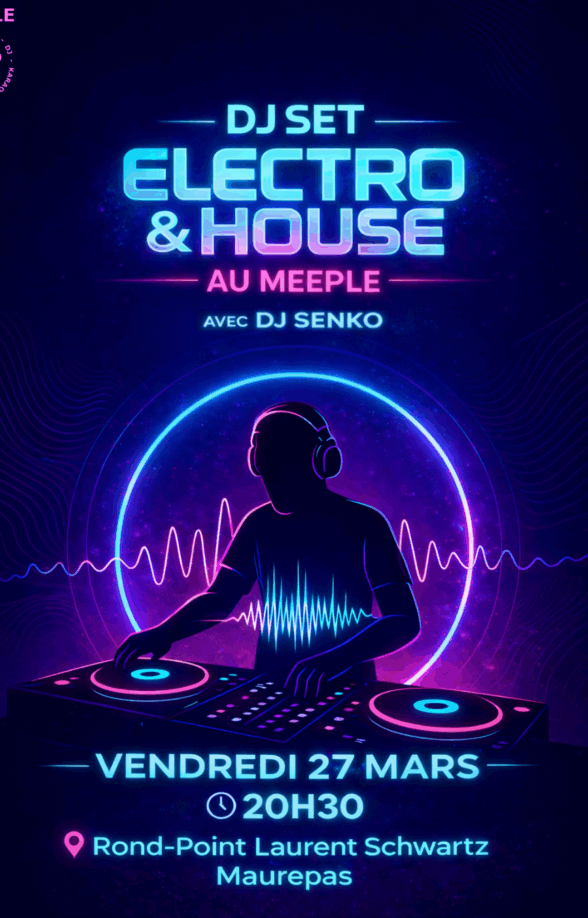 Prépare-toi à faire vibrer tes neurones (et tes baskets) ! Ce vendredi, le Meeple passe en mode électro pour une soirée sous haute tension ⚡
