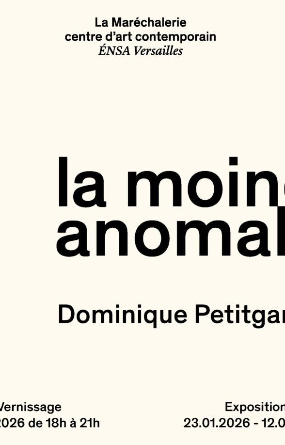 Du 23.01 au 12.04.2026 Entrée libre et gratuite du mardi au vendredi de 14h à 18h le week-end de 14h à 19h L'exposition est fermée lundis et jours fériés.