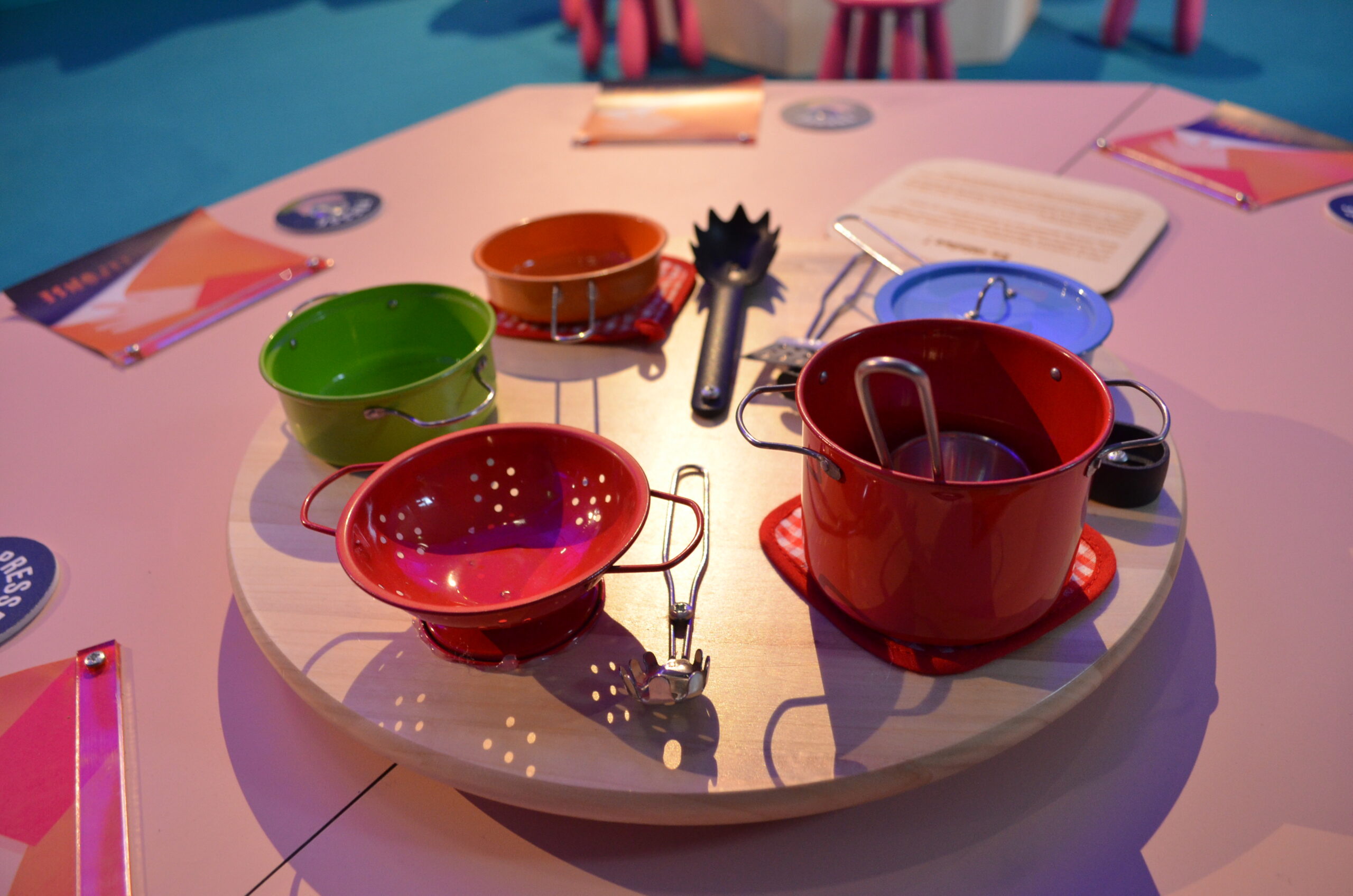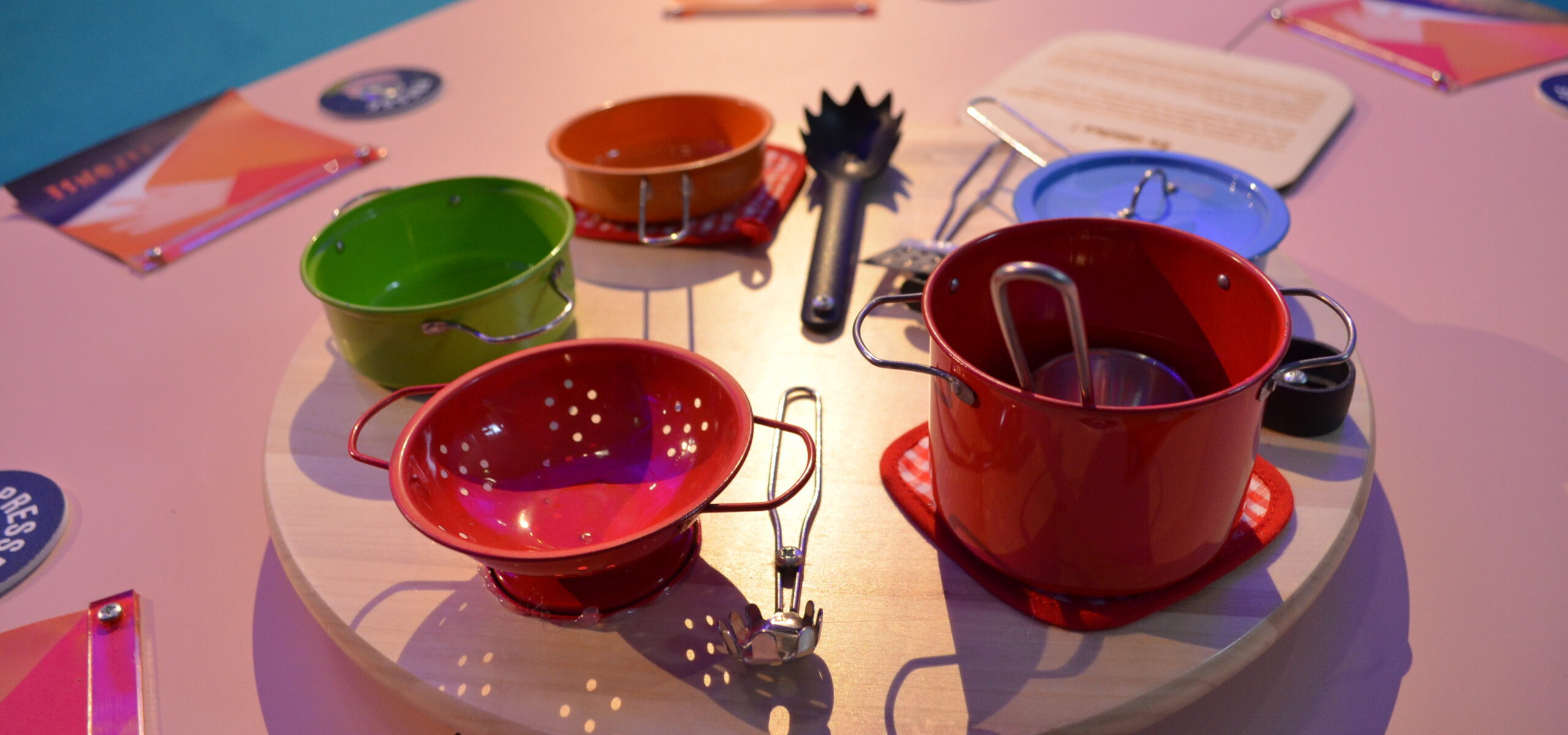 Au cœur d’un univers inspiré de la cuisine, les petits explorateurs utilisent leurs sens pour reconnaître, goûter, sentir, toucher et écouter. Une façon ludique de redécouvrir leurs sensations à travers l’alimentation.