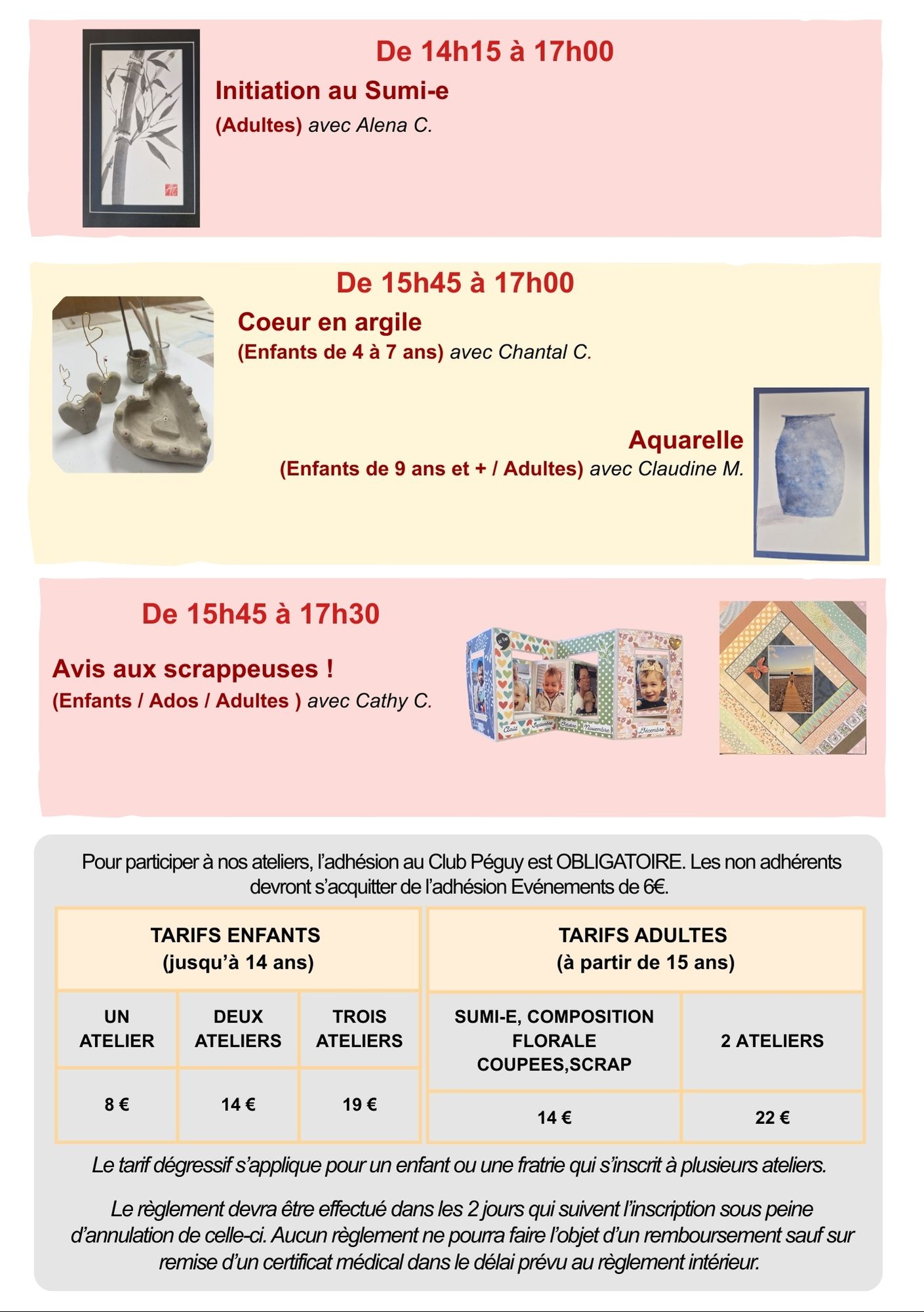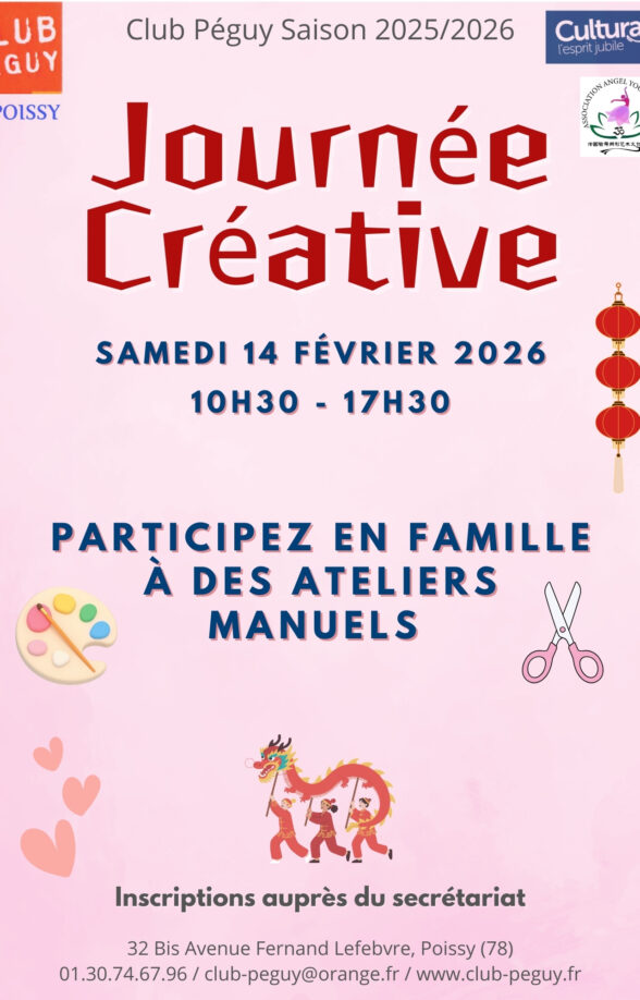 Venez participez à la journée créative du Club Péguy. Pour petits et grands, venez partager un moment en famille ou entre amis.