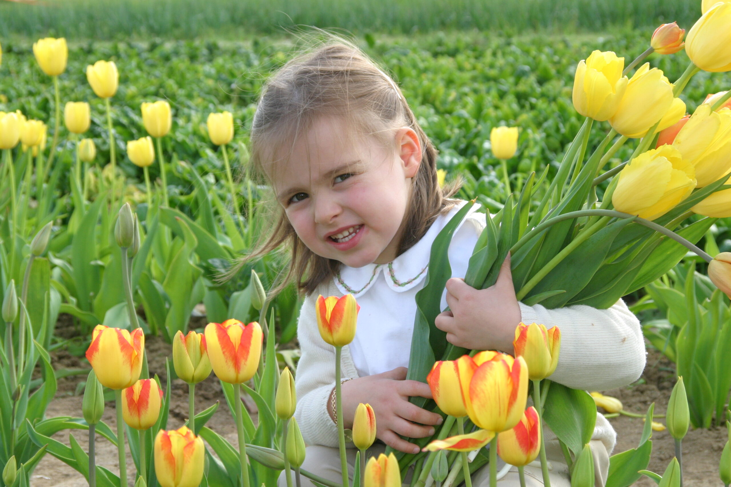 Les famille se promènent dans les champs et cueillent les tulipes, elles sont en pleine floraison, mais aussi quelques légumes et herbes aromatiques déjà présentes dans les champs.