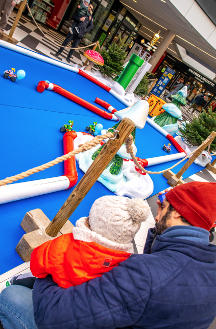 À vos manettes ! Petits et grands pilotes pourront se défier sur ce circuit de voiture téléguidées dans un décor de glace. Et pas n’importe quel circuit, celui du célèbre Mario et sa version « bataille de ballons ».