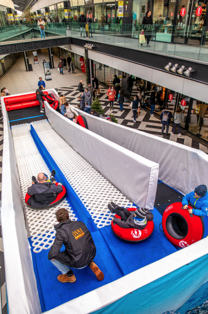 Piste de luge synthétique de 15m de long que l’on dévale dans une grosse bouée, la luge tubing.