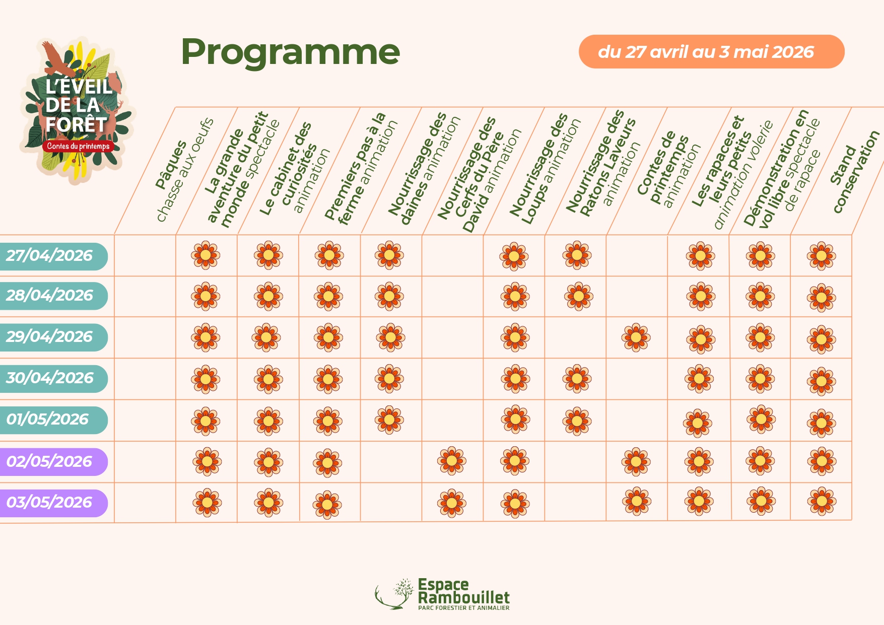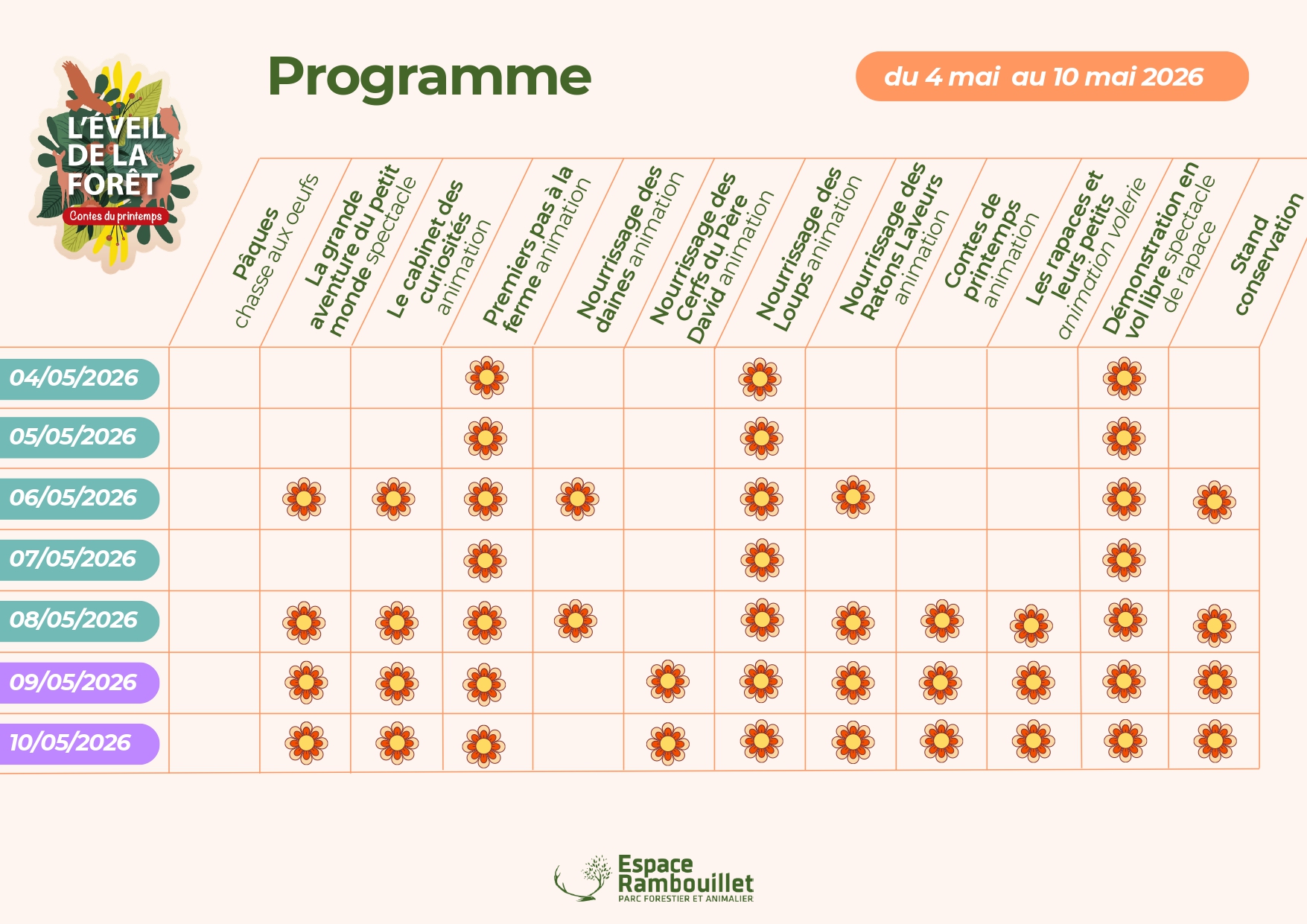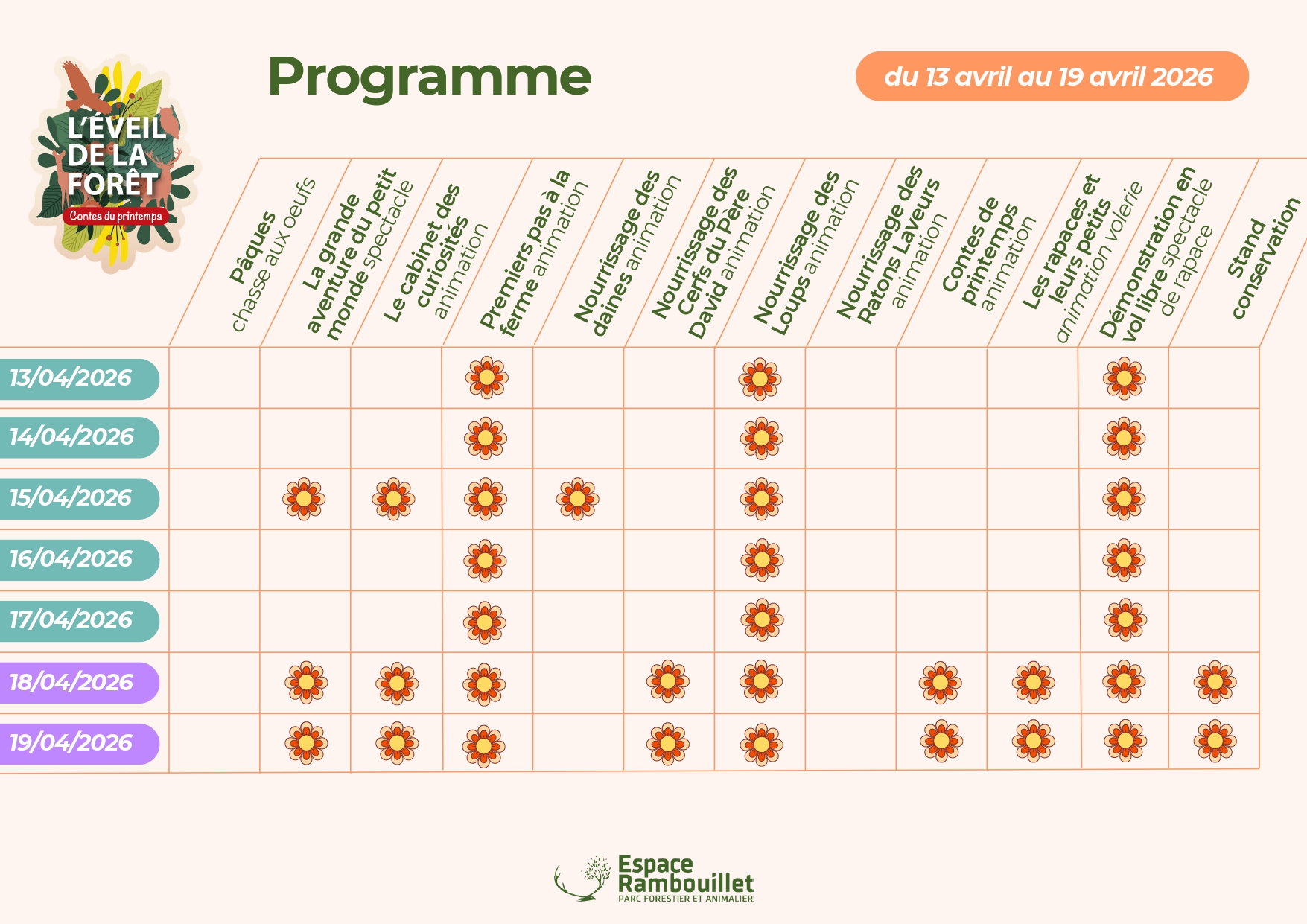 Au cœur d’un parc forestier exceptionnel, plongez dans un univers où faune, flore et imagination s’entremêlent. L’événement met à l’honneur le printemps, saison des naissances, des floraisons et du renouveau, à travers des animations accessibles à tous.