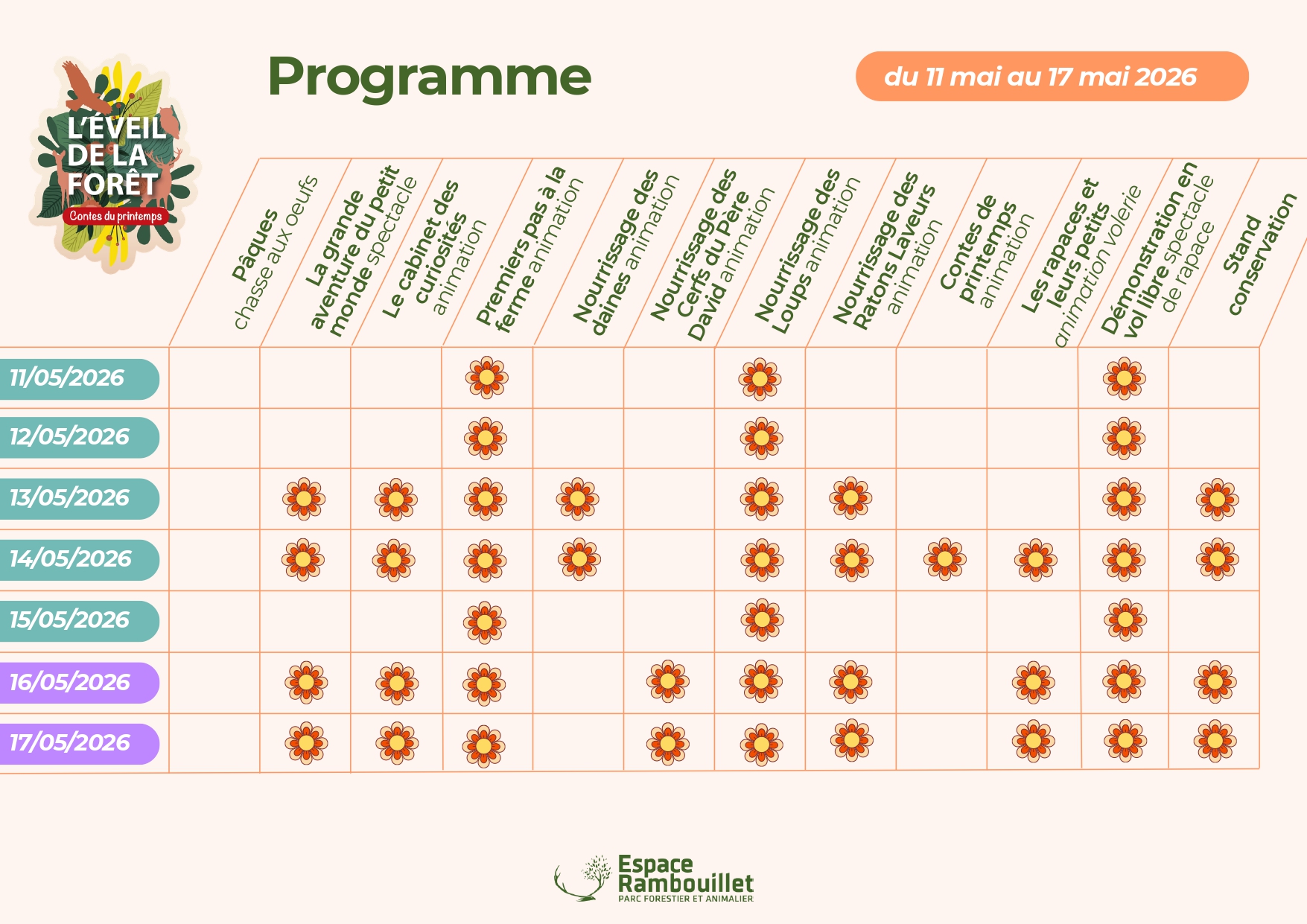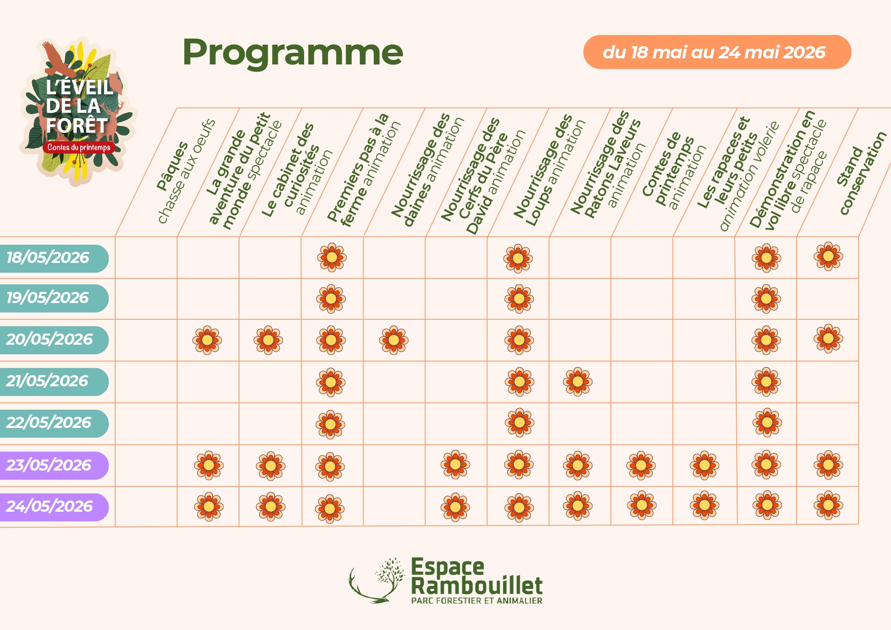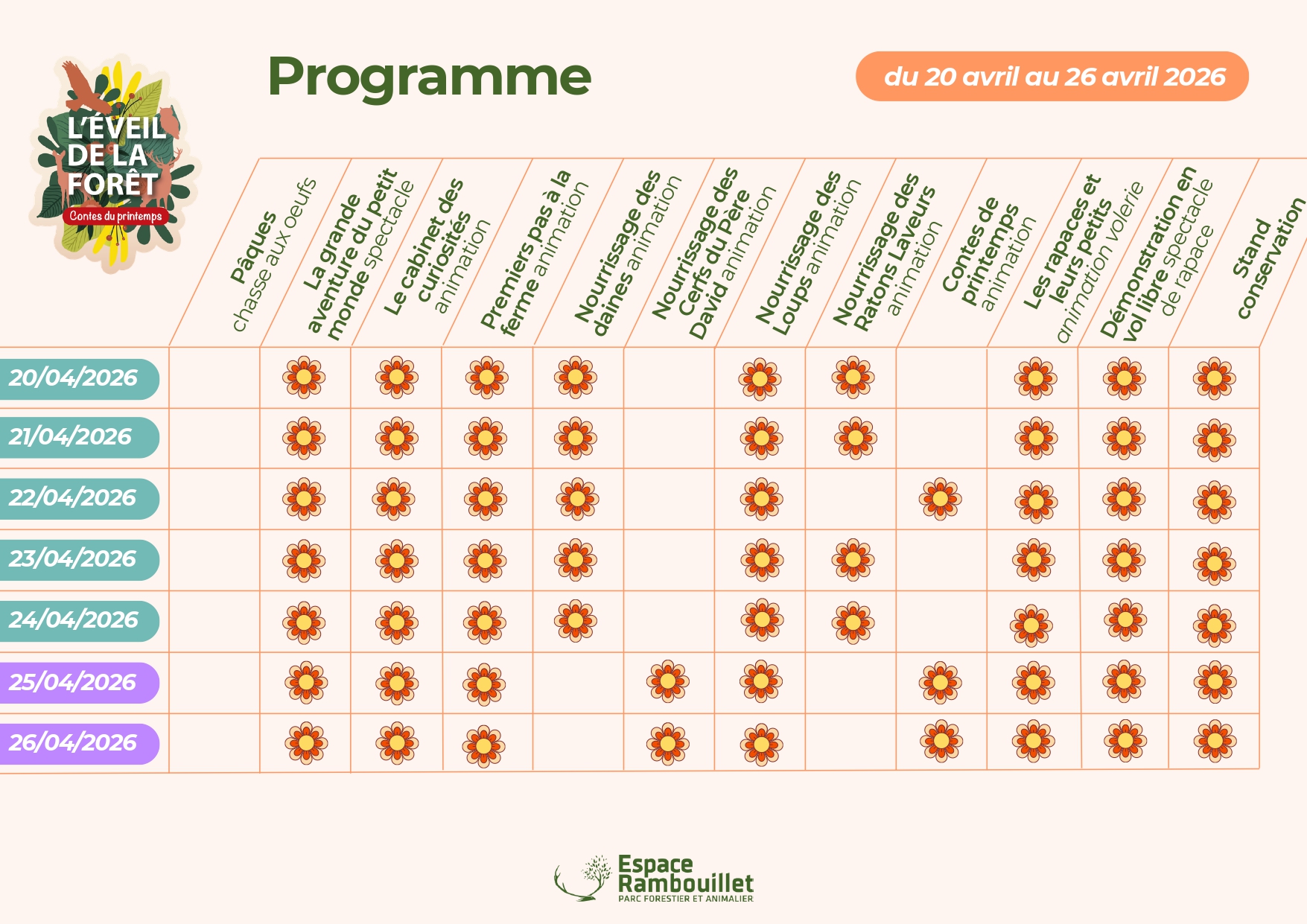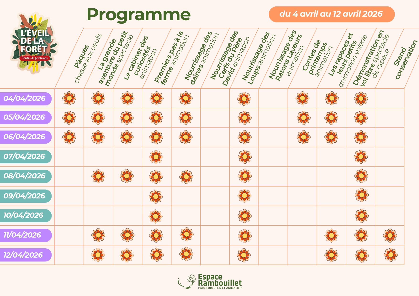 Au cœur d’un parc forestier exceptionnel, plongez dans un univers où faune, flore et imagination s’entremêlent. L’événement met à l’honneur le printemps, saison des naissances, des floraisons et du renouveau, à travers des animations accessibles à tous.