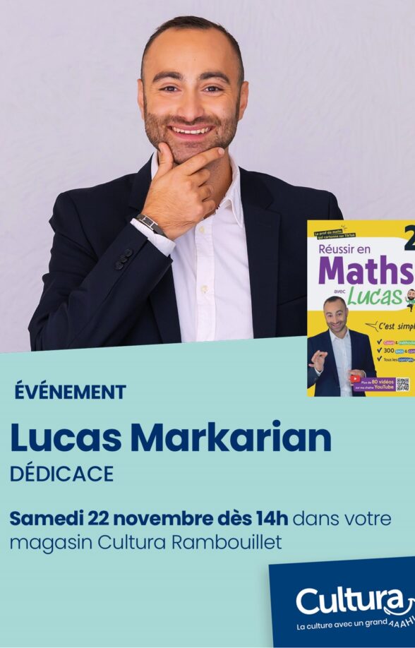 Lucas-Maths en dédicace au magasin Cultura Rambouillet. Lucas Markarian, alias “Lucas-Maths” sur TikTok, est un professeur de mathématiques devenu star des réseaux sociaux avec ses vidéos pédagogiques virales qui cumulent plusieurs millions de vues.