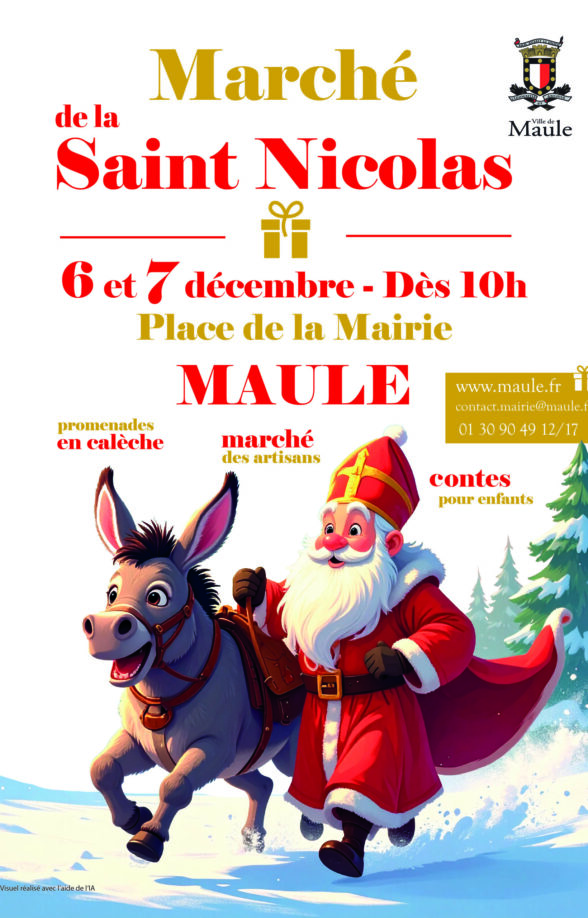 Le marché de la Saint Nicolas se tiendra à Maule le samedi 6/12 de 10h à 20h et le dimanche 7/12 de 11h à 18h. Au programme : des concerts, des déambulations musicales, des spectacles de rue, des promenades en calèche et près de 40 exposants.