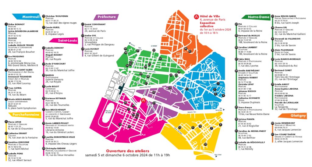 Parcours dans les ateliers d'artistes versaillais du 4 au 5 Octobre 2025, après une exposition collective des 55 artistes du 30 septembre au 4 octobre dans les salons de l'hôtel de ville.