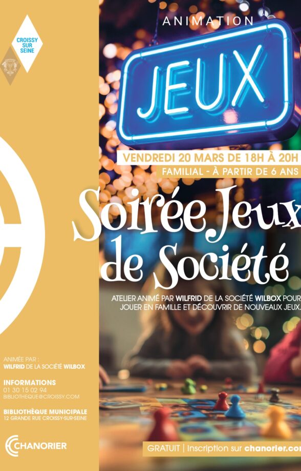 Atelier animé par Wilfrid de la société Wilbox pour jouer en famille et découvrir de nouveaux jeux. Familial - A partir de 6 ans. Gratuit – Sur inscription Infos et réservations : Bibliothèque 01.30.15.02.94 – bibliotheque@croissy.com