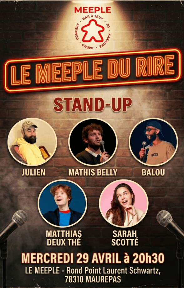 Vous avez besoin d’une dose de bonne humeur pour couper votre semaine en deux ? Le Meeple vous donne rendez-vous pour une soirée de stand-up mémorable !