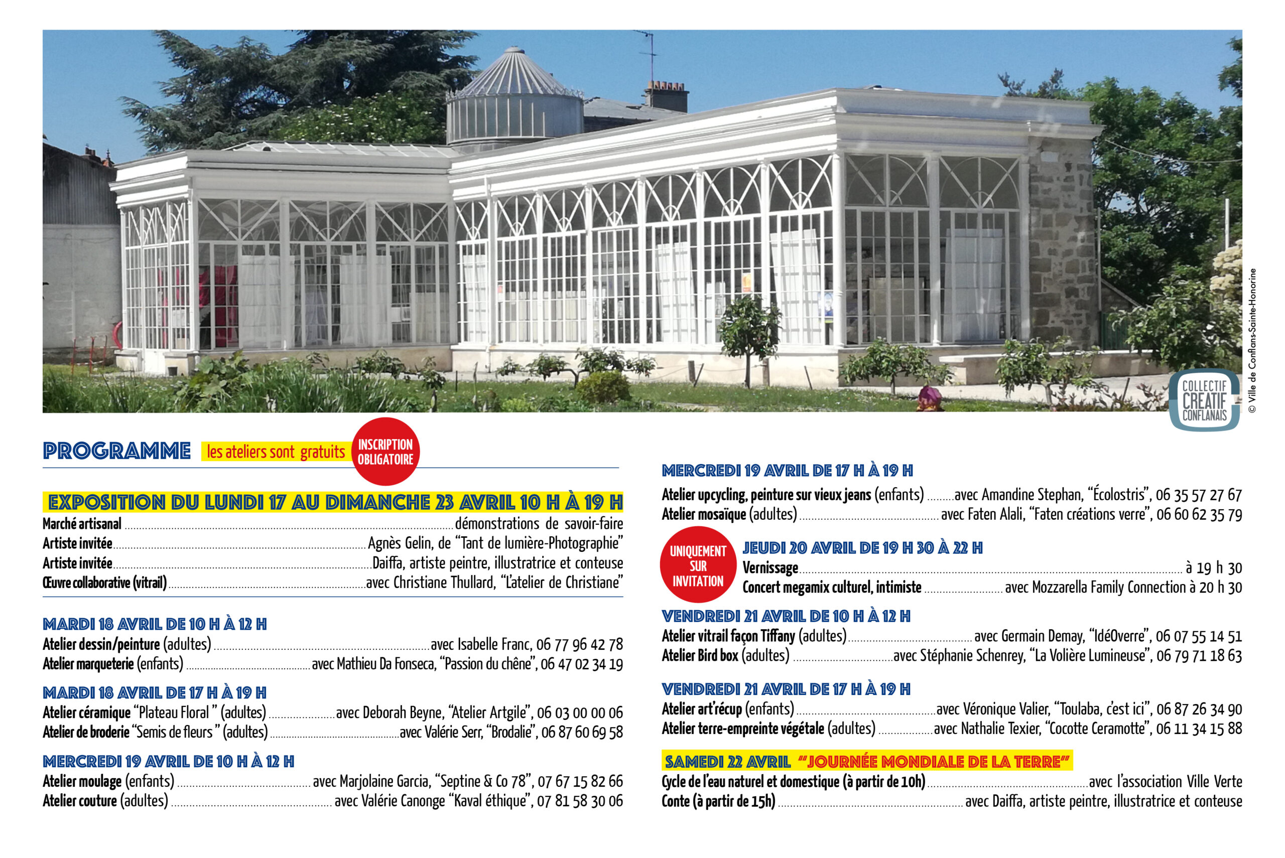 Ateliers gratuits et sur inscription, plus d’informations sur collectifcreatifconflanais.fr