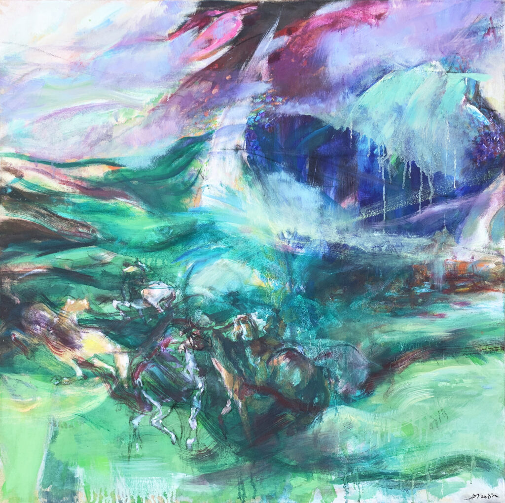 À travers cette rencontre intergénérationnelle, c’est une véritable conversation picturale qui se déploie. Chaque univers singulier affirme sa force propre tout en résonnant avec les autres. Jean-Paul Morin peint la vitalité du monde naturel : forêts profondes, cascades lumineuses et paysages habités par le souffle de la vie. Marie-Odile Huard explore la mémoire des ruines d’Angkor, englouties par la végétation, où se mêlent poésie, sacré et mystère. Thomas Pierre développe une recherche nourrie par l’univers numérique et les jeux vidéo d’arcade, où pixels et typographies rétro s’entrelacent dans des abstractions contemporaines et kaléidoscopiques.