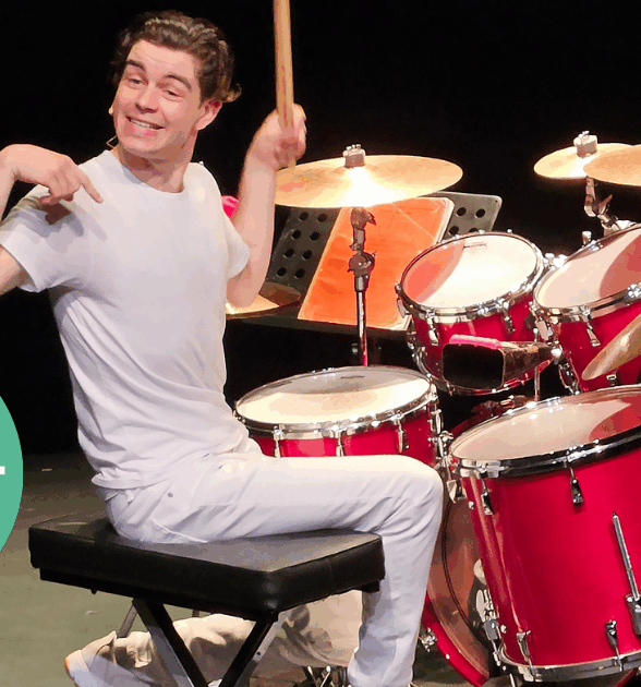Loin d’être un simple d’esprit, Adrien Lepage est simplement différent. À mi-chemin entre Forest Gump et Billy Elliot, ce gamin surdoué, beau de naïveté, vit une passion défendue pour la batterie. Petit à petit, il lève le voile sur une histoire aussi drôle que bouleversante et nous prend par la main pour nous raconter sa vie à travers son amour pour son instrument. La justesse de l’écriture de ce spectacle rend à merveille toute la palette d’émotions qu’une passion absolue peut susciter chez un homme. Une histoire qui tient en haleine le spectateur et le gifle au dernier « coup de cymbale ».