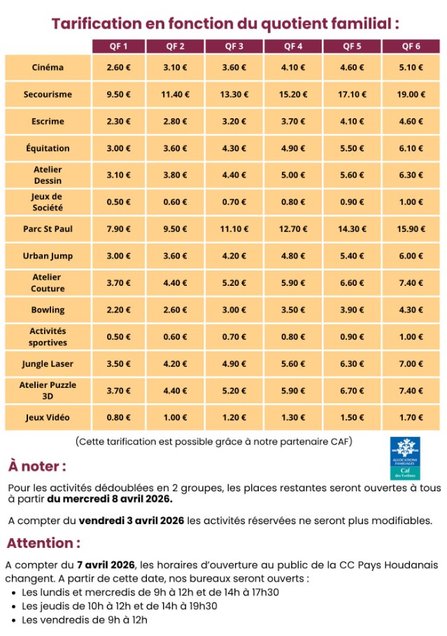 Inscription uniquement par téléphone, dès maintenant aux jours et horaires habituels d'ouverture de la CC du Pays Houdanais.