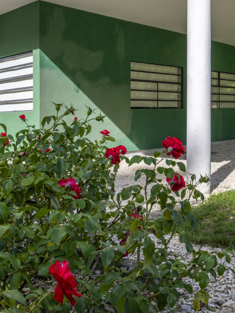 Au bout du parc, Le Corbusier a également imaginé une maison du jardinier, conçue avec les mêmes techniques que la villa. Plus discrète et moins lumineuse, elle apparaît comme une version compacte et fidèle du chef-d’œuvre principal.