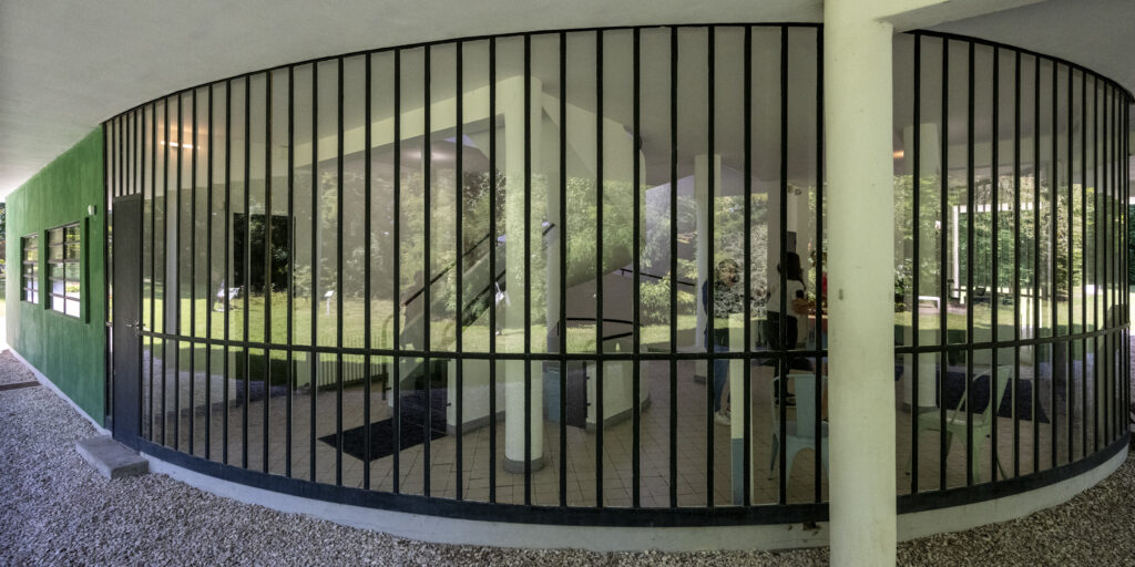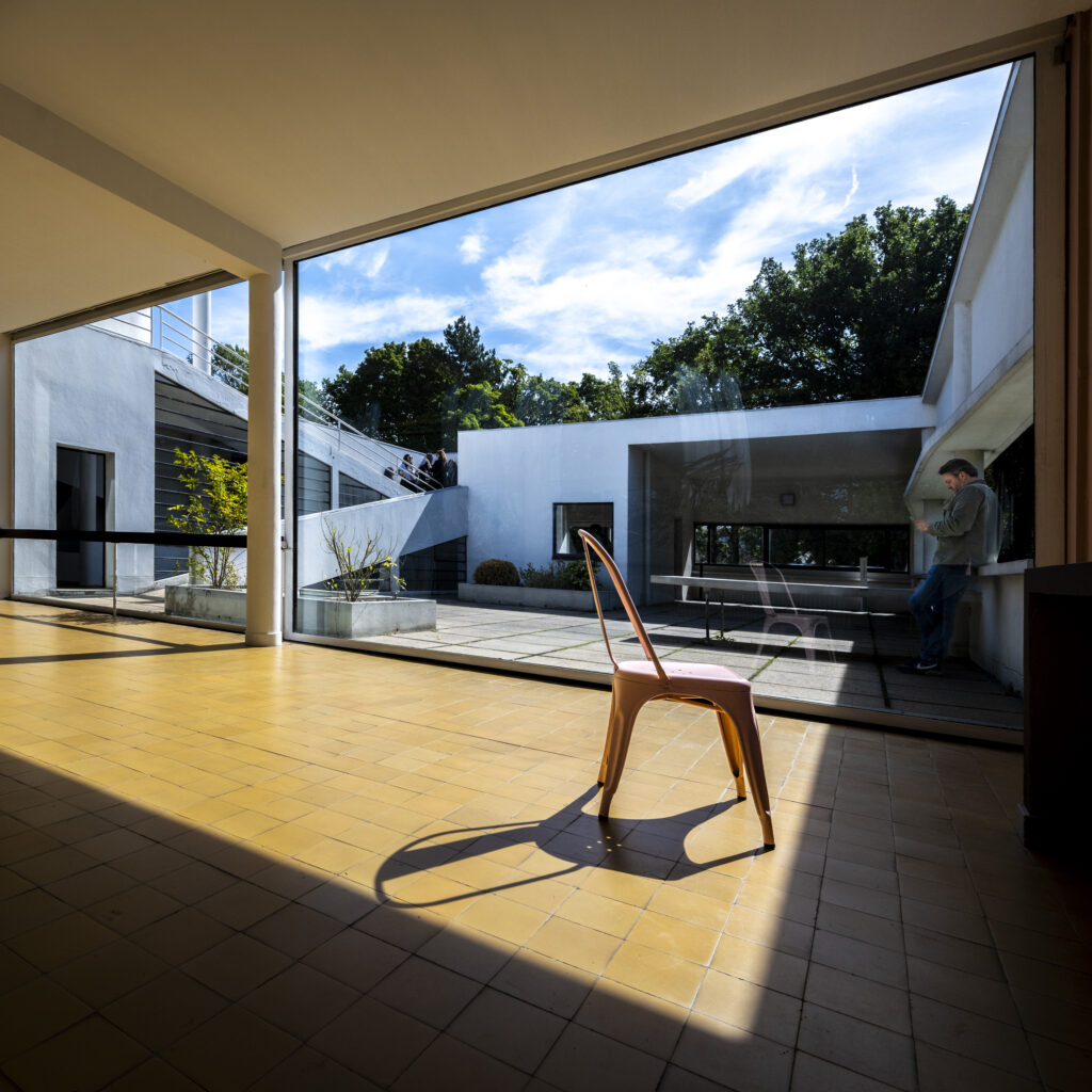 La Villa Savoye est le résultat d’un dialogue constant entre les envies des propriétaires et les expérimentations visionnaires de Le Corbusier. Parmi ses célèbres « cinq points de l’architecture moderne », les pilotis en béton armé ont ici été pensés pour faciliter la circulation… jusque pour la voiture des voisins de la famille Savoye !