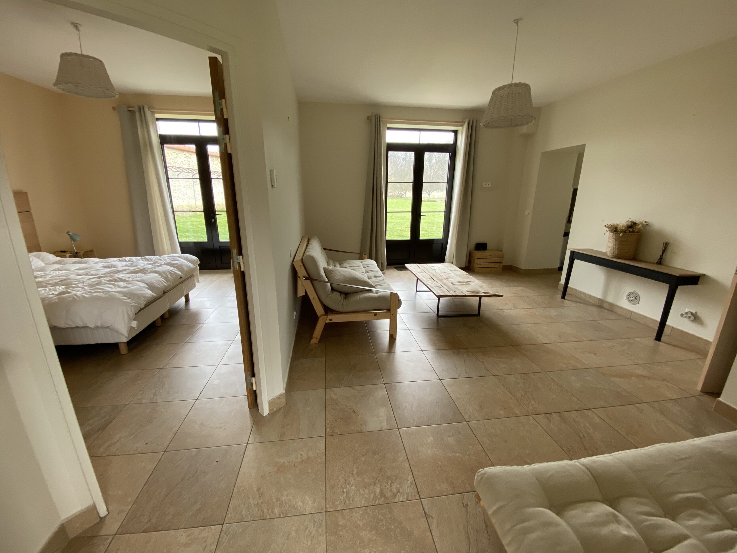 Dans un cadre entièrement préservé et un calme absolu, les 3 chambres et le double salon permettent d’accueillir jusqu’à 6 adultes et 2 enfants.