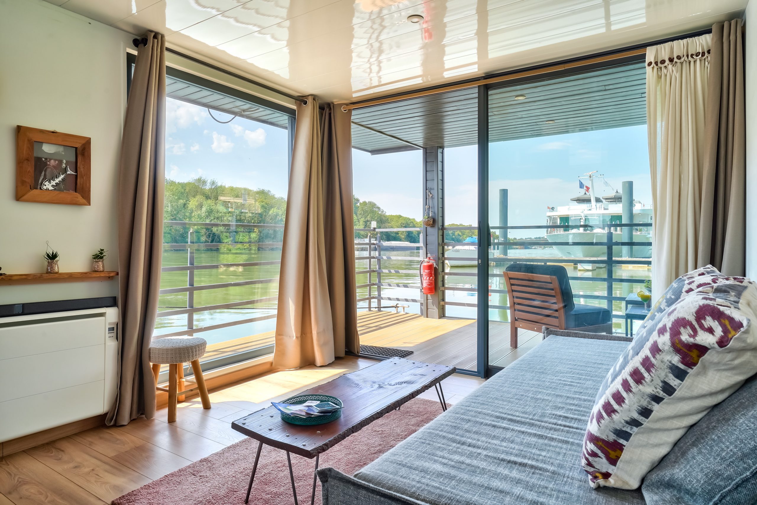 Découvrez la House Boat WeStay : une maison flottante de 40 m² à Conflans-Sainte-Honorine. Avec ses terrasses offrant une vue à 360° et son ambiance chaleureuse façon cabane canadienne, c'est une escapade cosy à seulement 20 min de Paris-Saint-Lazare.