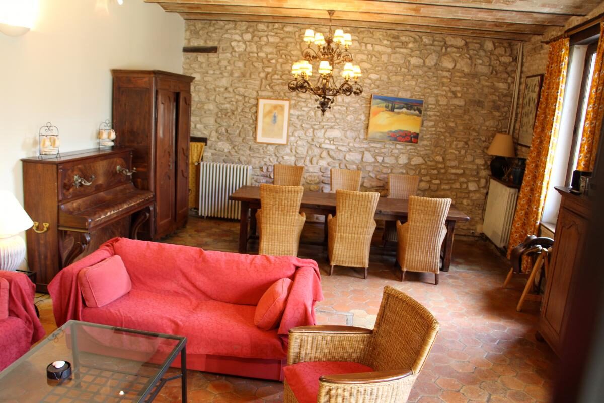 Rez-de-chaussée : séjour avec canapés, cheminée à insert (bois non fourni), TV 110cm et WIFI (fibre optique).