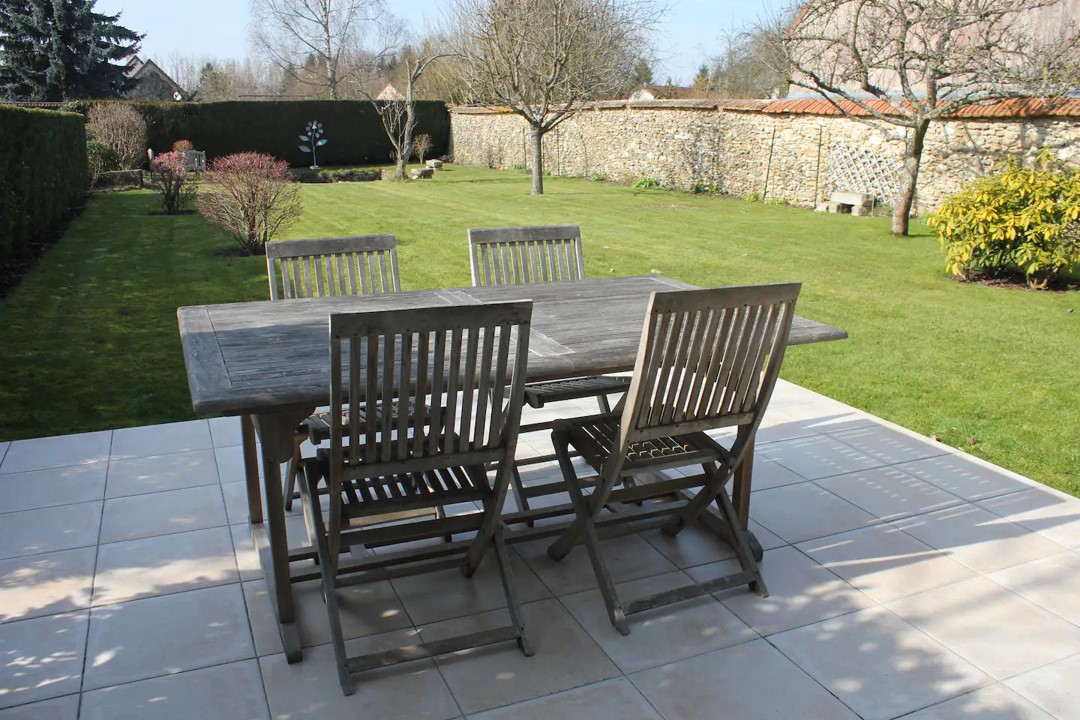 Vous bénéficiez d'un jardin entièrement privatif avec du mobilier, table pour déjeuner sur la terrasse, transats, salon de jardin, table de ping-pong.
