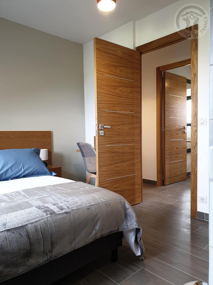 Au rez de chaussée : Grande cuisine équipée (lave-vaisselle, lave-linge séchant ,micro-ondes, four). Salle à manger ouverte sur l'espace salon. 1 chambre avec un lit double 140*190, espace de rangement et bureau, 1 salle d'eau (douche accessible pour les personnes à mobilité réduite 120*100, vasque et WC).