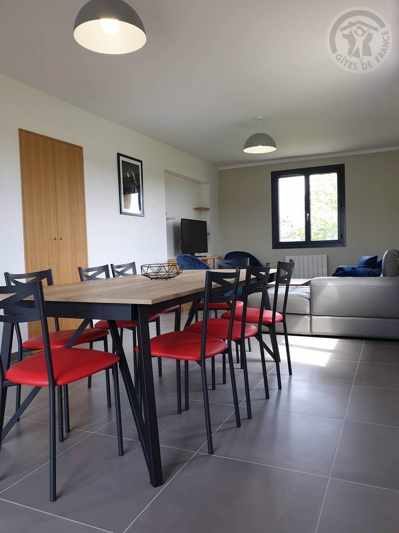 Très bel espace extérieur, vue sur la campagne, terrasse, jardin de 3300m² arboré et entretenu clos, commun avec le second gîte. Stationnement dans la propriété, fermeture avec un portail. Barbecue au gaz avec plancha, salon de jardin, ballon de foot.