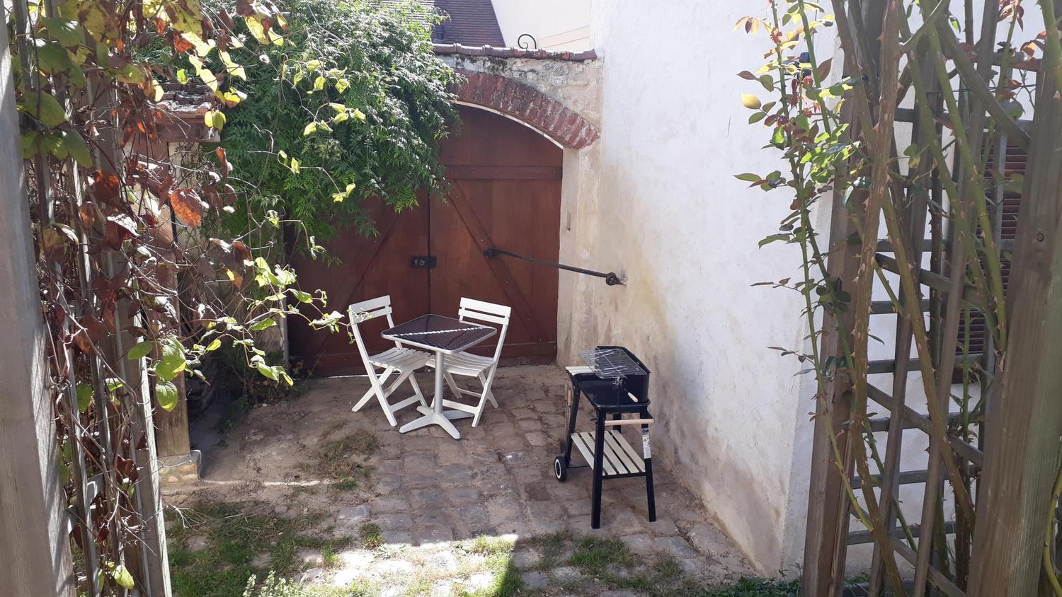 Stationnement possible devant la maison des propriétaires ou dans l’impasse située derrière le gîte. Vue sur le jardin des propriétaires, avec une partie privative de 50 m², table et chaises, barbecue.