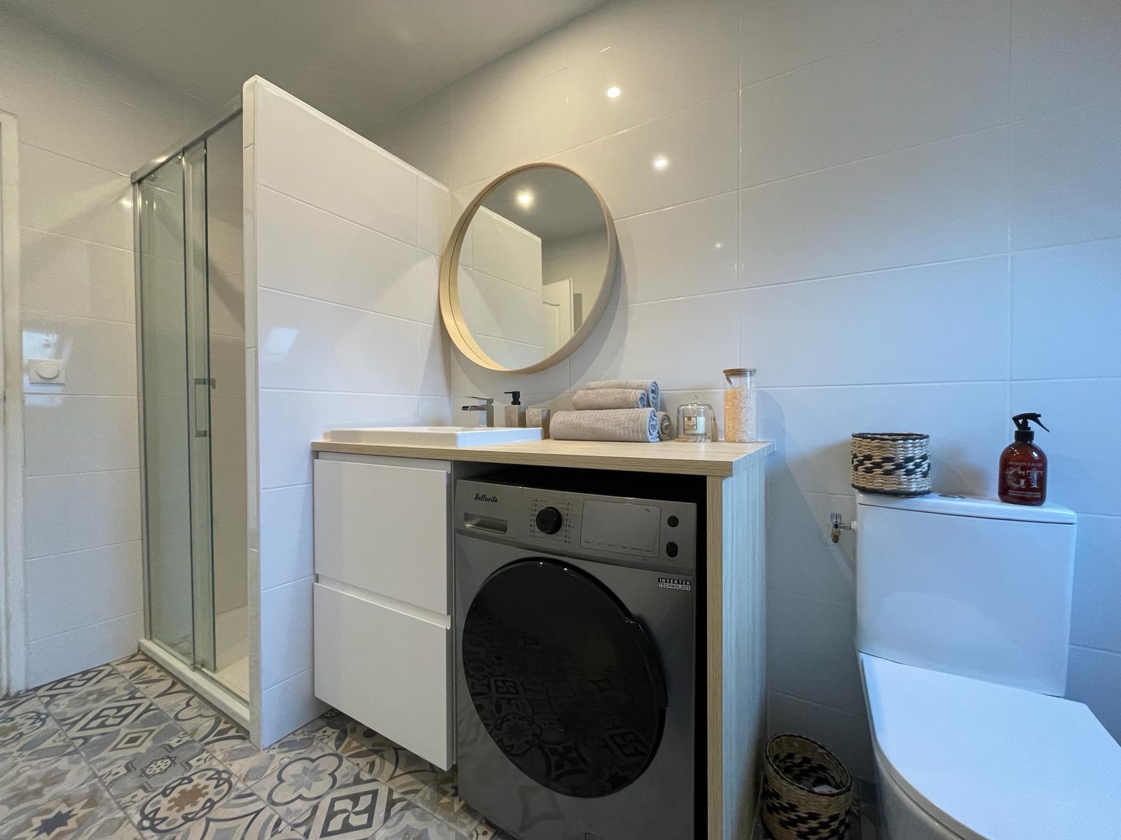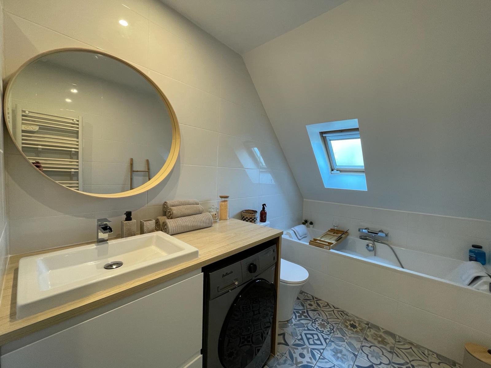 - A l'étage : 2 grandes chambres de 15m² et 17m² avec lits 140 et canapés convertibles, salle de bains avec douche, baignoire et WC.