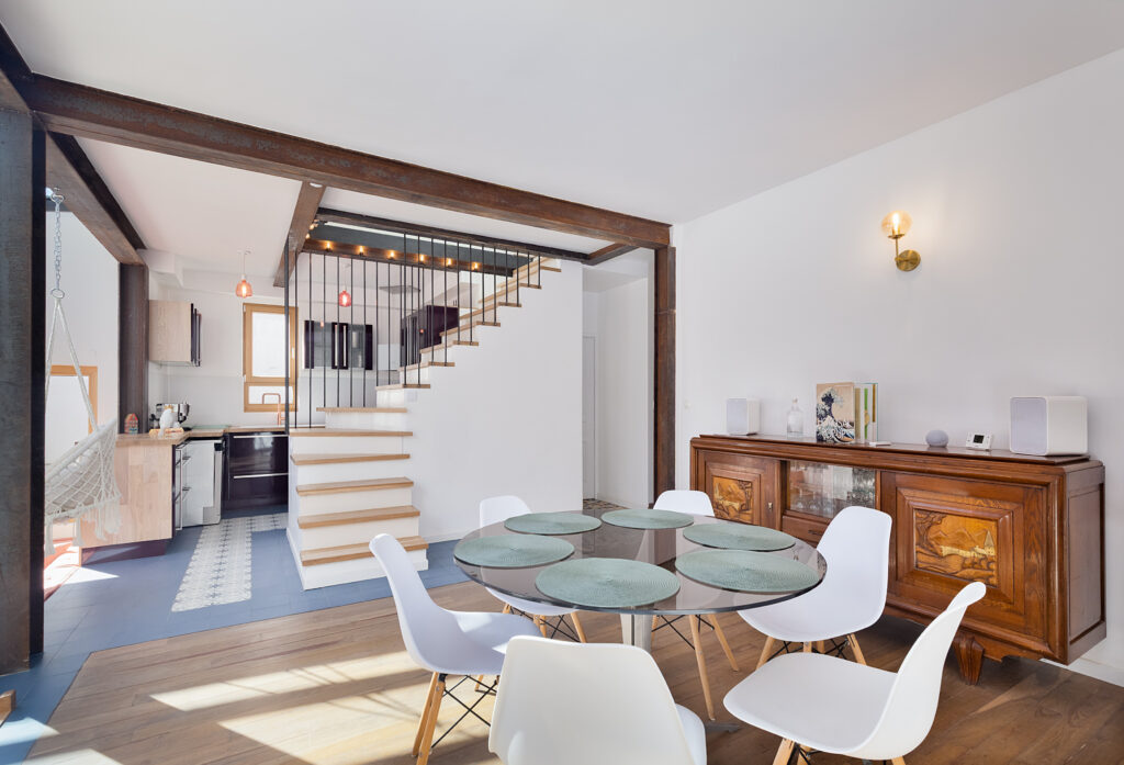 L'Arboré se distingue par son design moderne et épuré, mettant en valeur une vaste verrière baignant le séjour de lumière naturelle. Le chauffage au sol assure une chaleur agréable tout au long de l'année. Les espaces communs comprennent un salon confortable, une salle à manger conviviale et une cuisine entièrement équipée, idéale pour préparer des repas en famille ou entre amis.