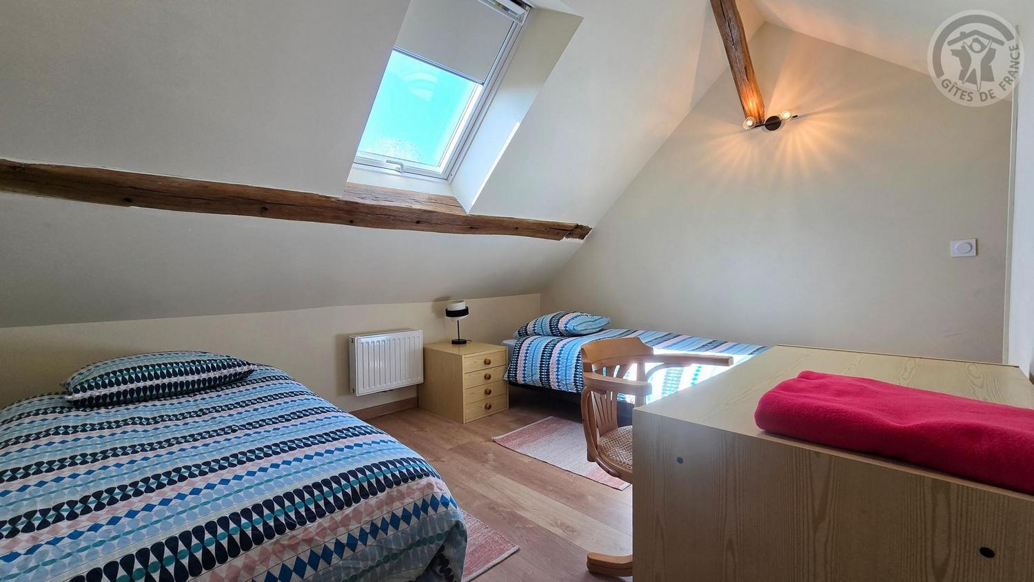 Une chambre avec 1 lit 160x190cm ou 2 lits 80x190cm.