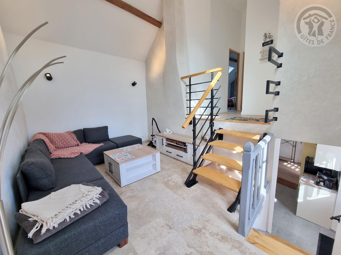 Entrée par un escalier extérieur. Gîte aménagé sur plusieurs niveaux.