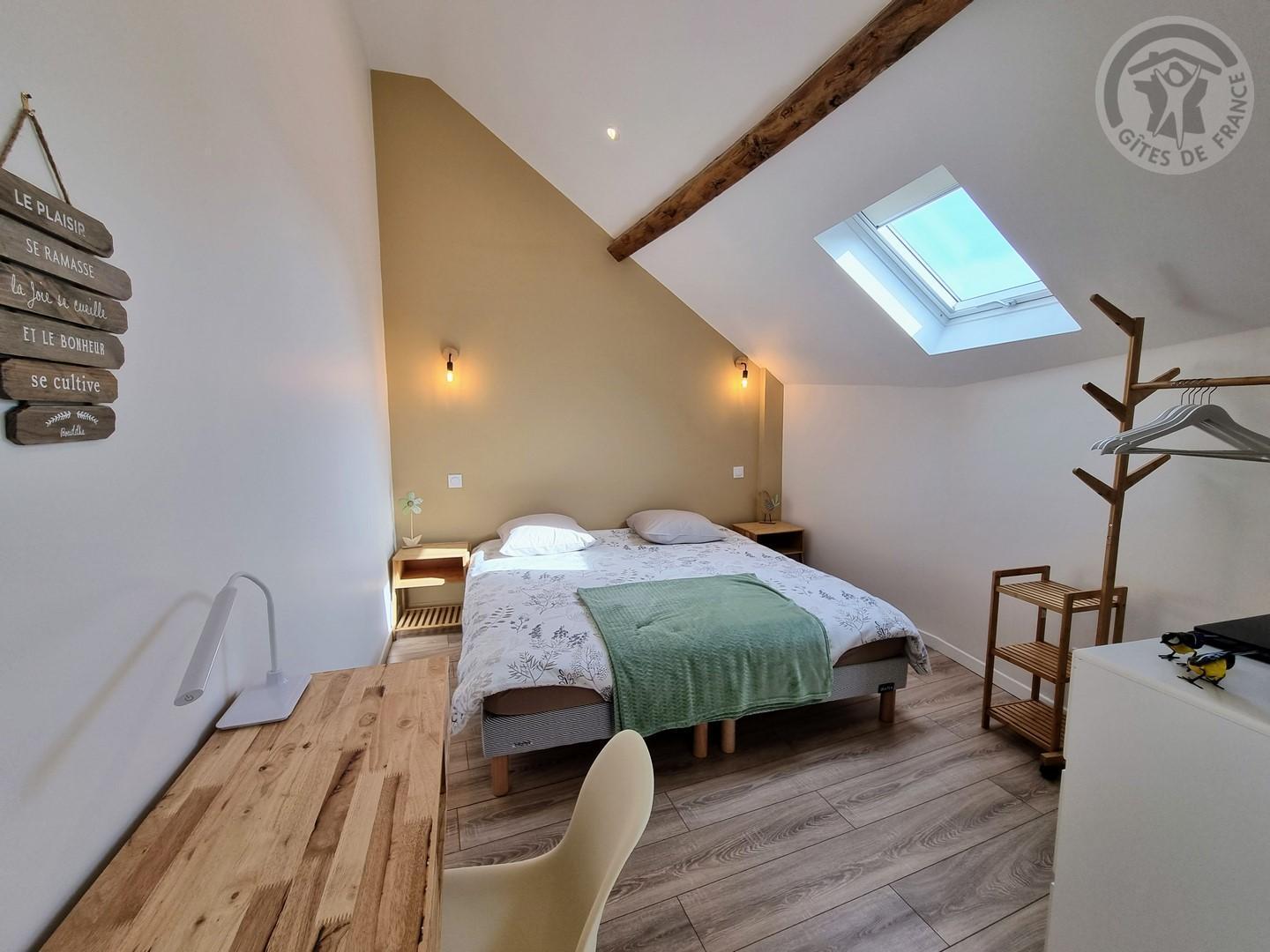 Gîte de 84m², mitoyen à un second gîte, situé dans une ancienne ferme à cour carrée.