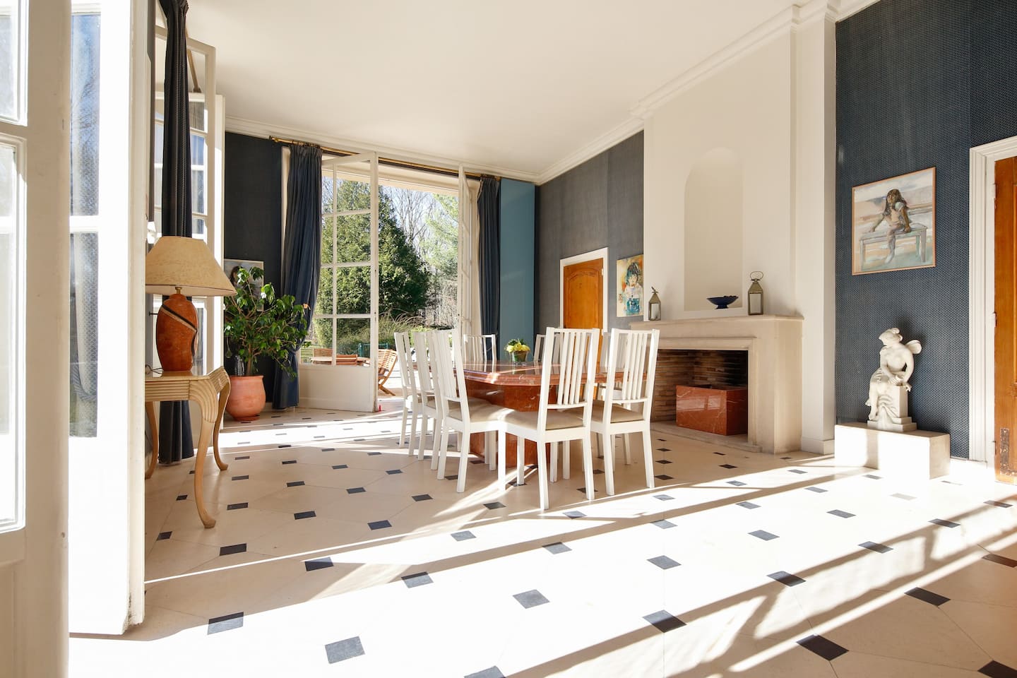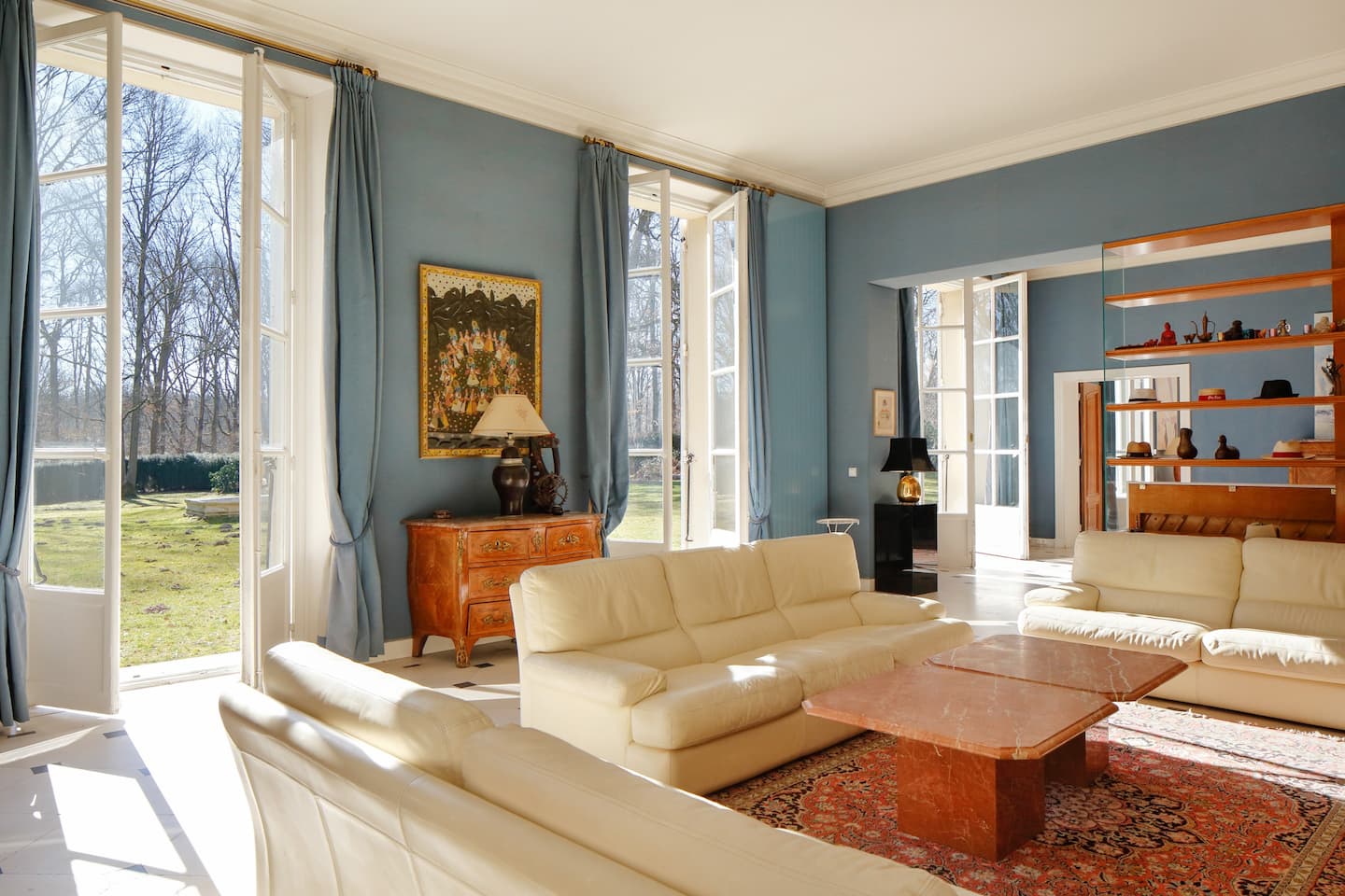 Édifiée par un architecte premier prix de Rome 1912, ce manoir de style art déco a été conçu pour profiter pleinement du jardin, grâce aux nombreuses et hautes ouvertures. Les pièces sont très lumineuses et renforcent la sensation d’espace. Le hall d'entrée avec l’escalier d’honneur donnent le ton à l'exubérance de l'ensemble, avec sa vue plongeante sur le parc et sur une fontaine du 18e siècle, ainsi qu’une salle de piano, salon de réception avec cheminée et une grande bibliothèque en boiseries, salle à manger avec cheminée, salle Home cinéma en boiseries également, un atelier de peinture utilisé actuellement comme salle de jeu (ping-pong, billard), grande cuisine à vivre moderne avec coin repas, une lingerie-buanderie et porte de service, escalier secondaire, sauna, salle de douche, WC et lave-main invités.