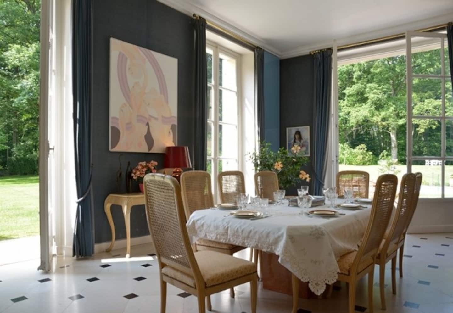 Somptueux manoir des années 30 sur 3 niveaux, noyé dans la verdure et le calme d’un parc arboré de 21 hectares, dans un joli village médiéval, préservé et recherché du sud-ouest Parisien dans la vallée de la Chevreuse.